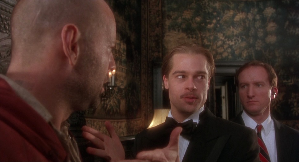 Blocking is equally precise. Gilliam stages scenes with deep focus in mind. He often places Brad Pitt’s character in the foreground or darting through the background, utilizing the entire Z-axis of the frame. Because they stopped down the lens to keep deep focus, both the manic foreground and the chaotic background are often sharp, leaving the eye nowhere to rest.