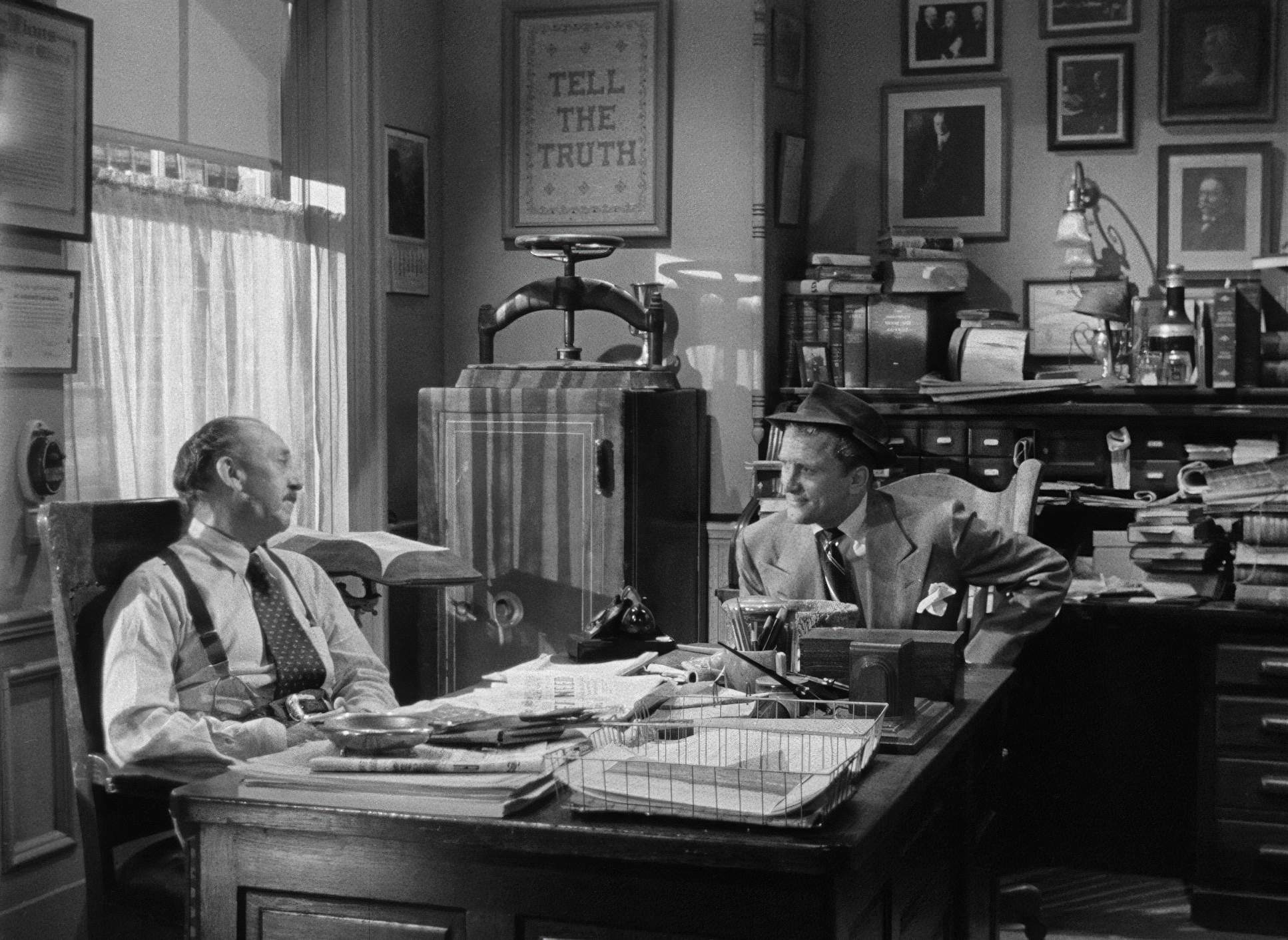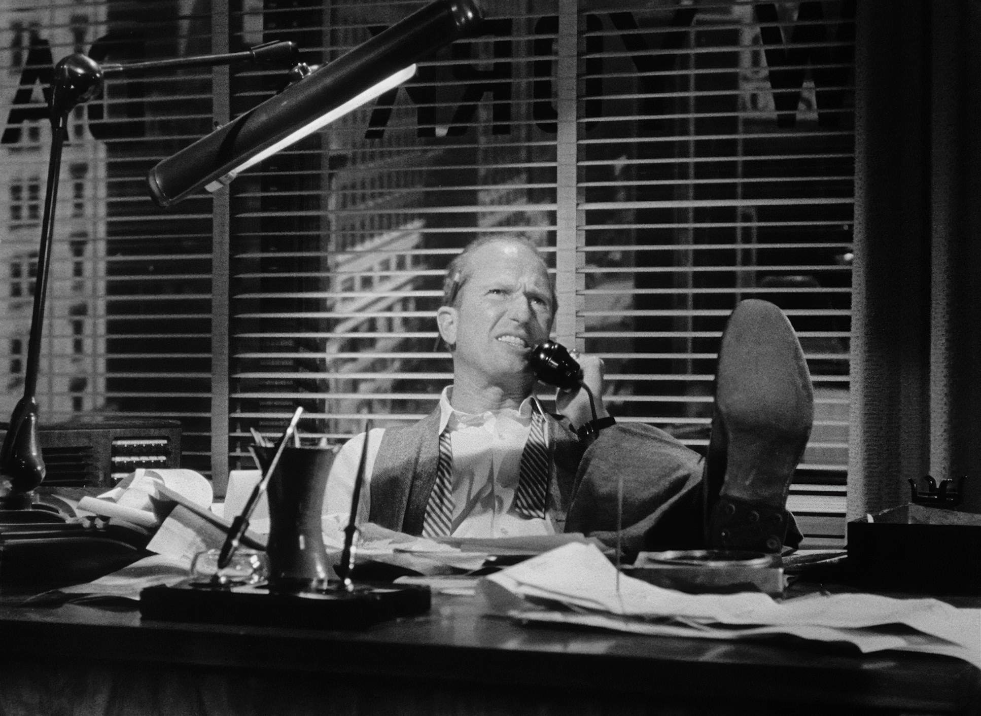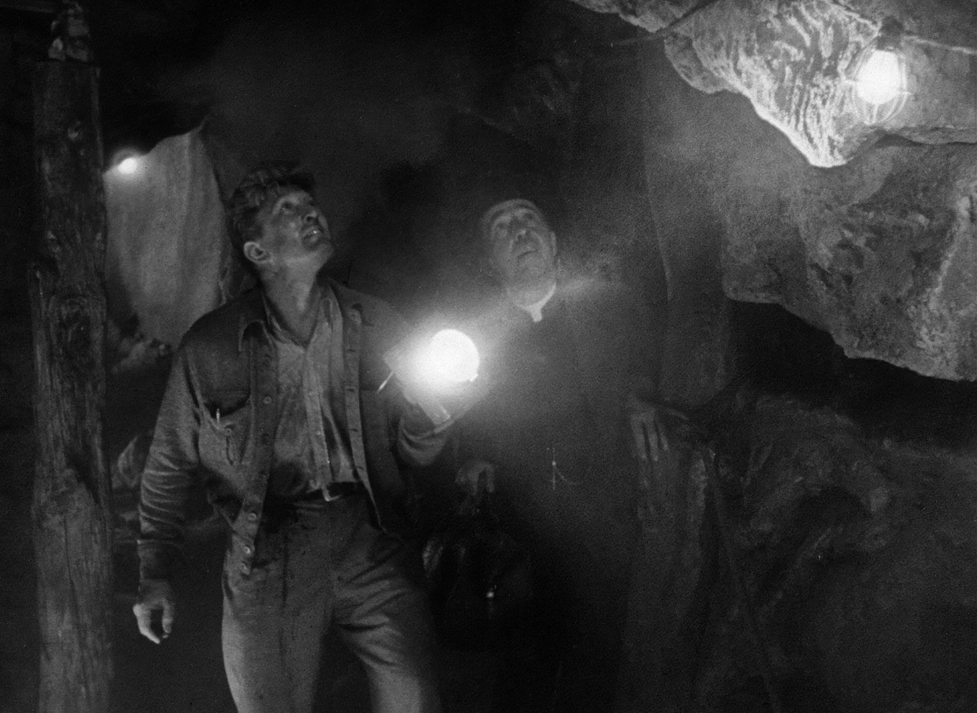 Wilder and Lang use composition to define power. Period. They lean heavily on deep focus keeping the victim Leo in the background, the rescue workers in the mid-ground, and Tatum’s calculating face in the foreground. It’s a layer-cake of corruption. You can’t ignore the context because Lang won’t let anything fall out of focus.