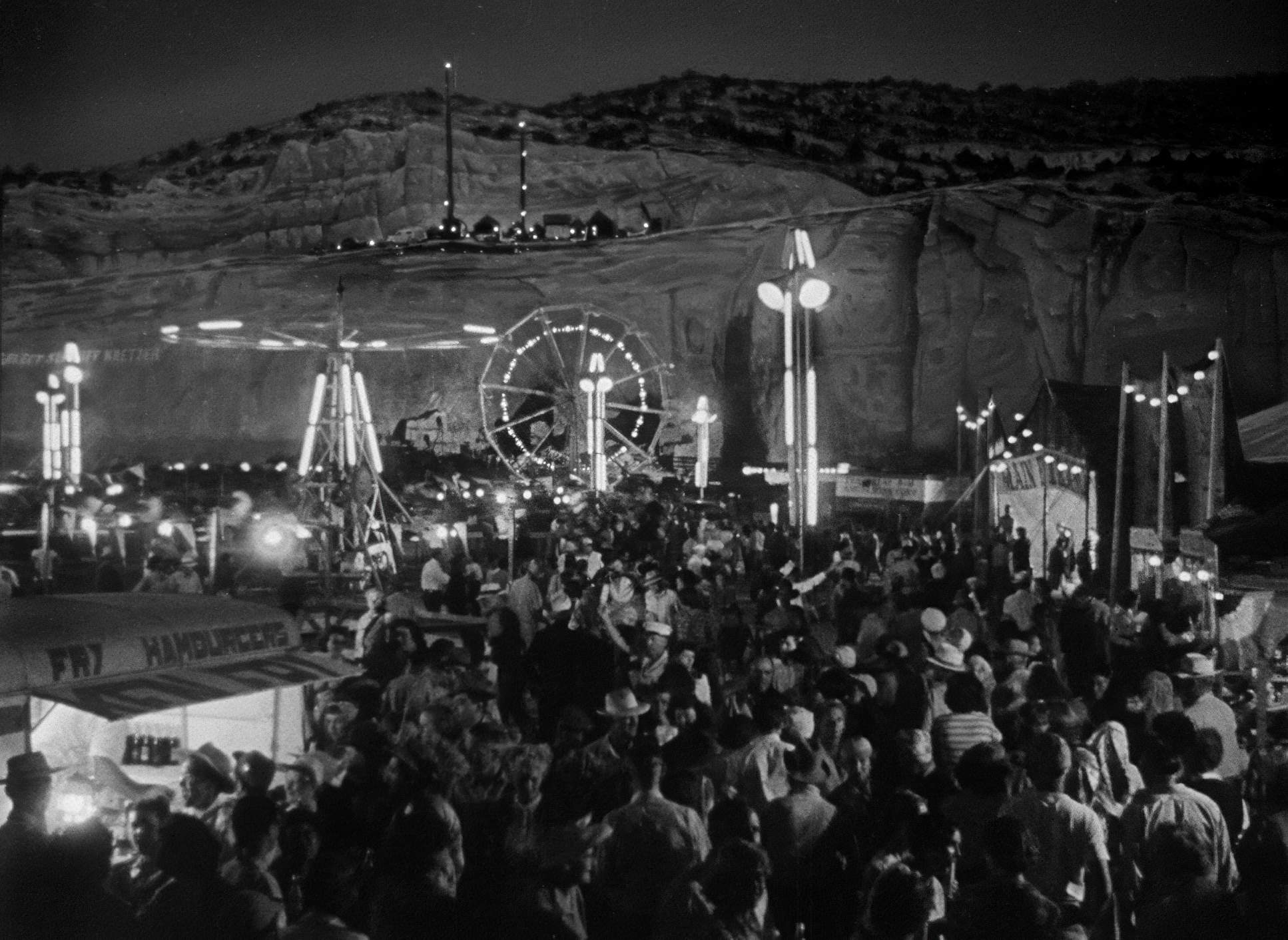 In the daytime exteriors, the lighting is brutal. Lang uses the harsh, unyielding New Mexico sun to create a naturalistic “truth” that Tatum spent the whole movie trying to warp. Once the carnival takes over at night, the lighting becomes artificial strung bulbs, flickering stalls, and the garish glow of the fairground. It creates this macabre party atmosphere that feels completely wrong for a rescue site. The light doesn’t beautify; it sculpts texture into the greed and desperation on every face.