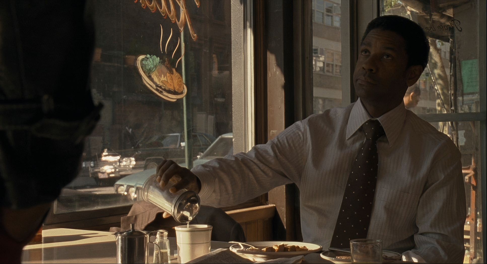 A curated reference archive of cinematography stills from American Gangster (2007)). Study the lighting, color grading, and composition.