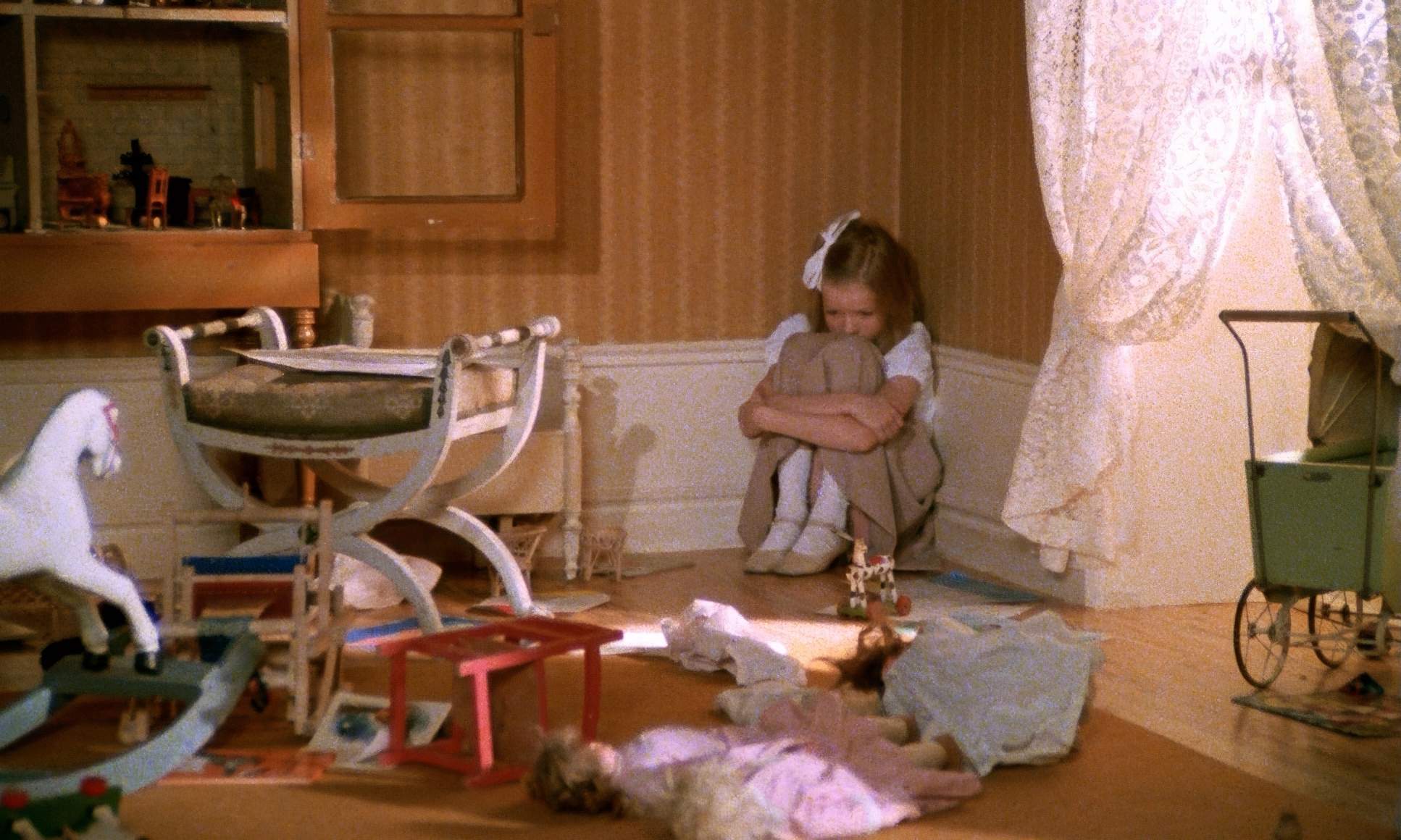 Since this was 1978, we’re talking about a photochemical process, not a DaVinci Resolve session. But the intent is clear. If I were grading this today, I’d be looking at the mid-tone density to keep those earth tones feeling rich but not muddy. The off-whites are crucial they give the parsonage a lived-in, aged feel that adds to the melancholy.