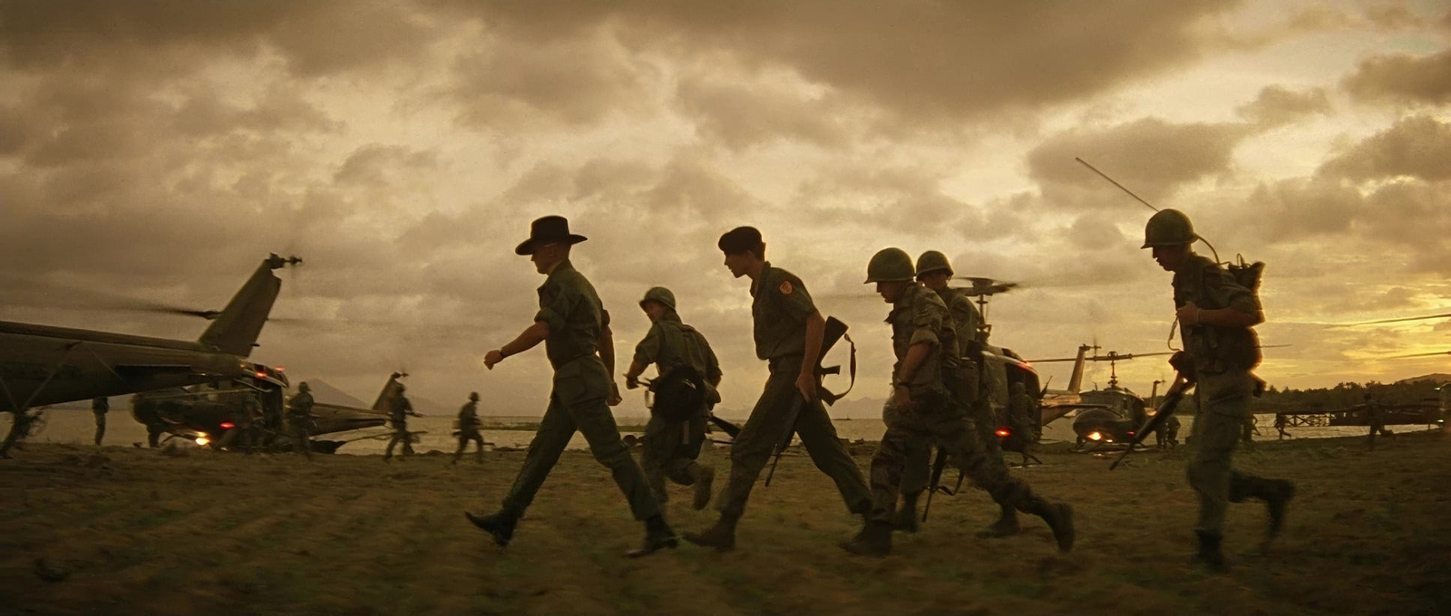 This blend of steadiness and instability mirrors the psychological conflict in the film—the controlled appearance of military operations versus the internal chaos experienced by the characters. The immersive long takes allow the audience to sink deeper into the narrative, while slow zooms and pans unravel moments of tension, peeling away the characters’ mental layers. Storaro’s choices emphasize that this is more than a physical war—it’s a war of the mind.