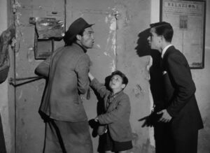 Another powerful use of composition is when Antonio and Bruno walk side by side, their hands clasped. The tight framing on this simple gesture communicates their bond in a way that words never could. It’s these kinds of small, intimate compositions that make the film so impactful for me—they speak volumes about love, desperation, and the human condition. The way Montuori uses framing and perspective also plays a role in establishing the power dynamics in various scenes. For instance, during the confrontation with the suspected thief, the camera angles effectively heighten the tension between the characters, further emphasizing Antonio’s vulnerability.