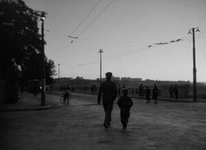 The tracking shots that follow Antonio and Bruno are particularly effective in underscoring the characters’ sense of desperation and relentless pursuit. For instance, during their search for the stolen bicycle, the camera tirelessly follows them, often from behind, creating a sense of urgency and fatigue that mirrors their emotions. In the scene where Antonio and Bruno search for the stolen bicycle, the handheld camera movements create a sense of urgency and chaos. It’s not flashy or overly stylized, but it’s precisely what the story needs. It makes me feel as though I’m walking with them, feeling their exhaustion and hopelessness.