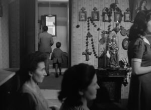Montuori’s compositions are deceptively simple, yet they convey so much about the characters’ inner world and their environment. Montuori often uses deep focus shots, allowing multiple elements within the frame to be in sharp focus simultaneously. This technique is particularly effective in scenes where Antonio is surrounded by crowds, emphasizing his isolation and helplessness despite being in a sea of people.
