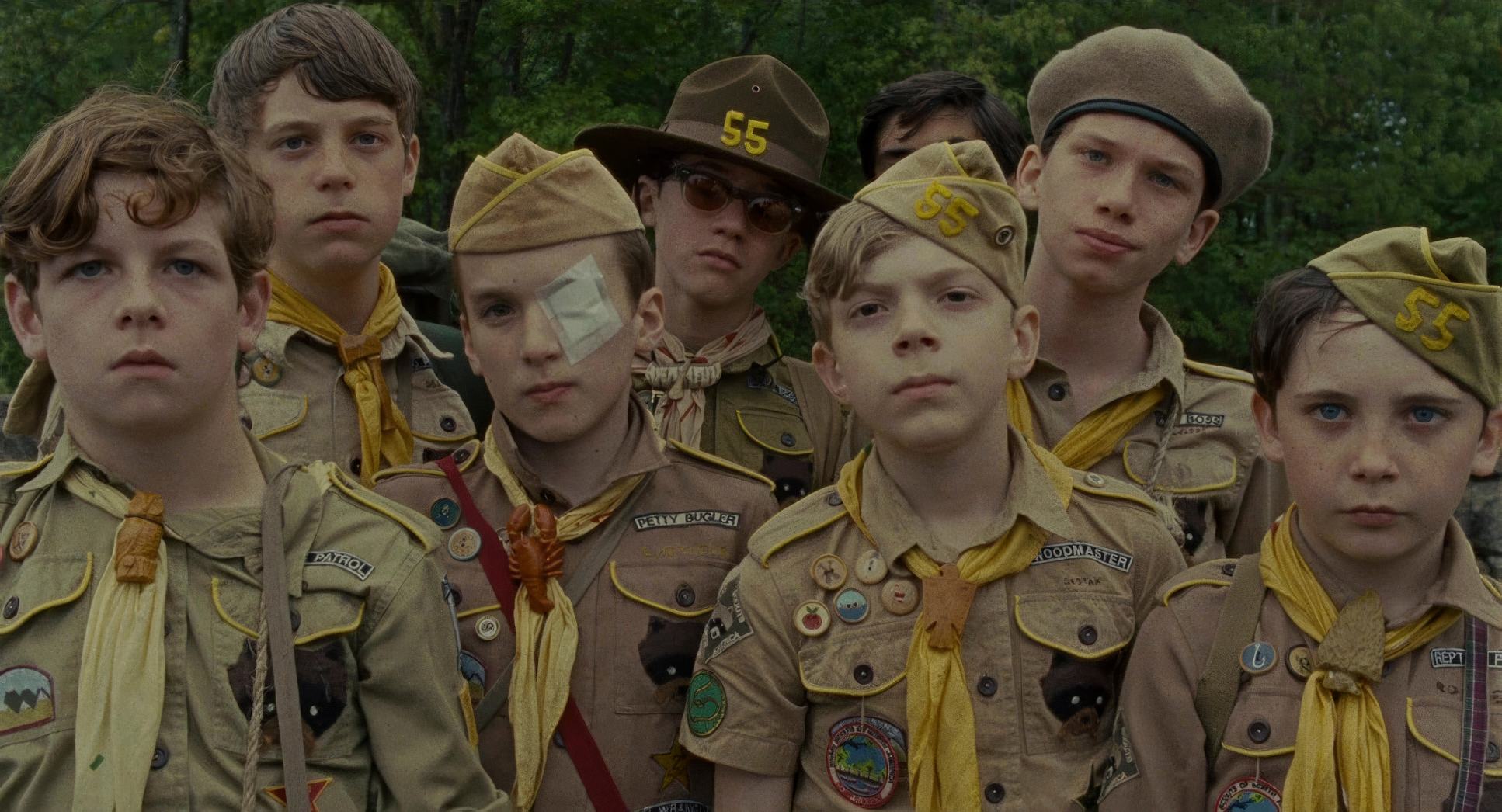 One of the things I admire most about the film is how the compositions convey narrative meaning. Sam and Suzy are often framed alone within vast landscapes, emphasizing their emotional and social isolation. In contrast, group shots highlight the constraints imposed by the adult world—whether it’s the rigid alignment of the Khaki Scouts or the strict order in Suzy’s family home. This visual storytelling enhances the film’s theme of longing for freedom, making the children’s escape feel even more poignant.