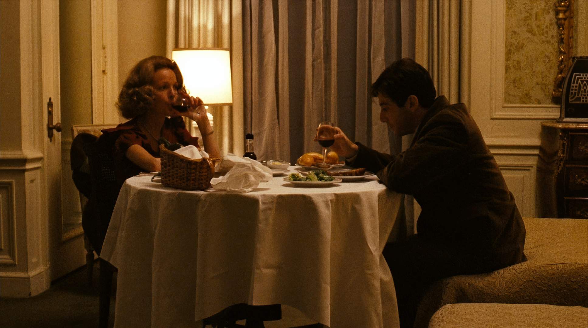 The color palette of The Godfather is another element that contributes to its immersive atmosphere. Willis employed a muted, desaturated color that leans toward sepia tones, creating a sense of timelessness. The rich earth tones in the film’s New York scenes contrast with the bright, warm hues in Sicily, symbolizing Michael’s brief escape from his family’s dark influence. Even Kay, Michael’s wife, is initially presented with a softer, lighter color to signify her innocence. As Michael’s transformation intensifies, however, the color grading around her character darkens, marking her inevitable entanglement in the Corleone’s shadowed world. This sophisticated use of color enhances the emotional depth of the narrative, reinforcing the film’s somber, brooding atmosphere.