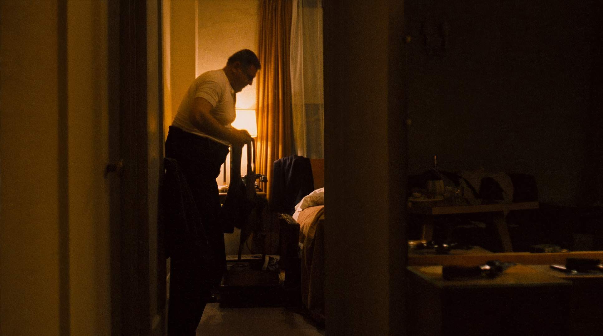 Willis’s approach to lensing and blocking is masterfully subtle, underscoring the nuances within the Corleone family’s relationships. He favored longer focal lengths to create intimacy and tension, compressing space to heighten the emotional stakes of each scene. Blocking, the deliberate placement of characters within the frame, further reveals the psychological landscapes of each character. In scenes where Michael interacts with his family, the positioning of each character reflects their relationships and power dynamics. One of my favorite instances is when Michael stands over Fredo, a visual representation of their strained relationship. This minimalistic approach allows the characters’ expressions and body language to speak volumes, transforming each scene into a carefully constructed portrait of tension and authority.