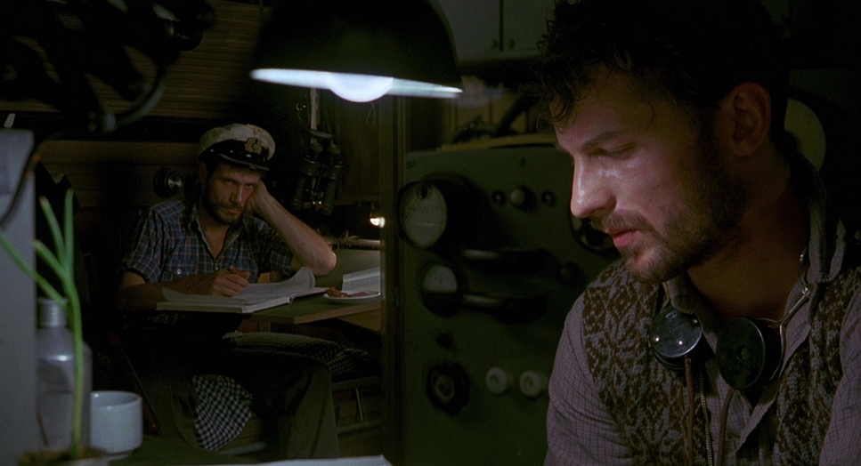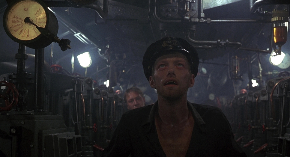 The use of overlapping planes is key. Even in a hallway, Vacano layers the image with pipes, valves, and sweaty bodies. This creates depth in a shallow environment and reinforces the feeling of being hemmed in. There is rarely any “clean” headroom; characters are pushed to the edges of the frame. When the sub dives, the camera tilts with the horizon, disorienting the viewer. These aren’t just cool angles; they are visual metaphors for the crushing pressure outside the hull.