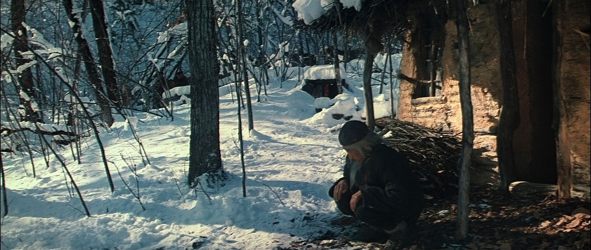 The lighting is a masterclass in motivated naturalism. When you’re at the mercy of the Siberian sun, you don’t fight it you use it. Kurosawa used the “edge light” of the sun and the flat, diffuse light of overcast winters to enhance the eerie feeling of isolation.