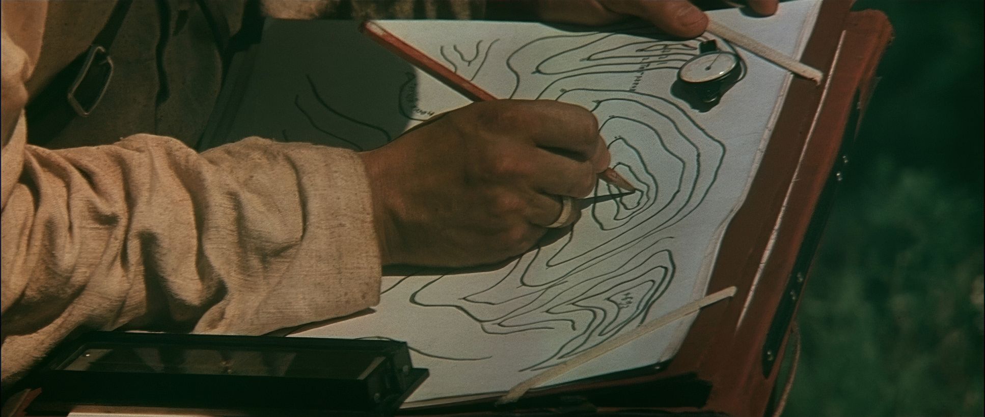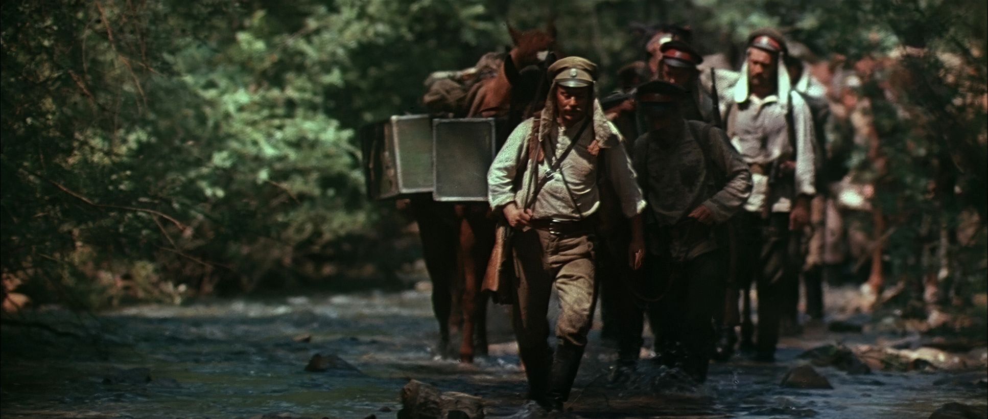 In Dersu Uzala, the camera doesn’t perform; it witnesses. There’s a deliberate, almost geological slowness to the pans. When you’re shooting on a KSK-70 a massive, heavy 70mm Soviet camera you don’t move it lightly. These slow pans across the wilderness emphasize the “sheer scale” of Siberia, making the human characters look like mere specs of dust.