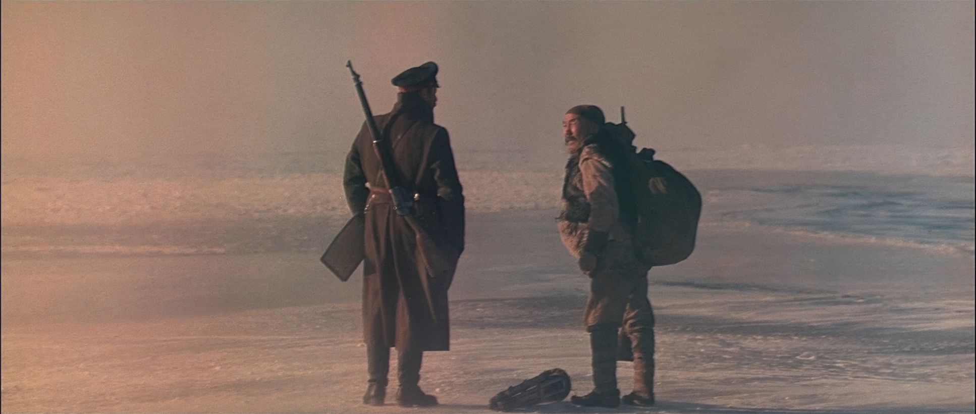 Kurosawa’s use of the 2.35:1 anamorphic frame is breathtaking. He masterfully utilizes negative space to hammer home the “man vs. wild” theme. You’ll see a tiny 2-shot of Dersu and Arsenyev dwarfed by a towering tundra. These aren’t just pretty frames; they are philosophical statements on human insignificance.