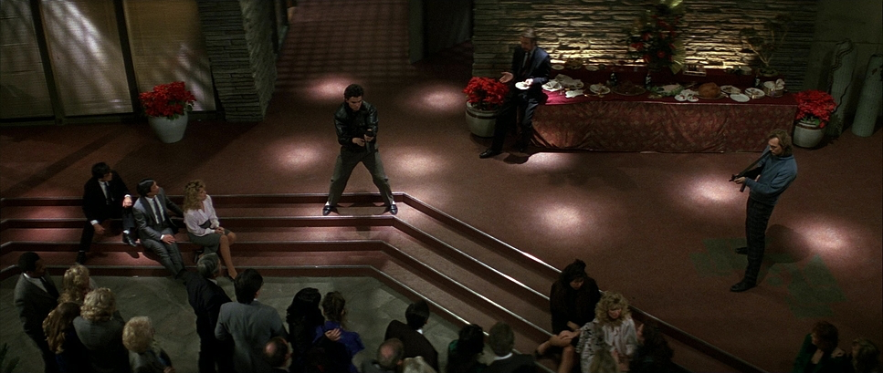 Compositionally, Die Hard is a textbook on how to use space. De Bont uses the architecture of the building to trap his hero.