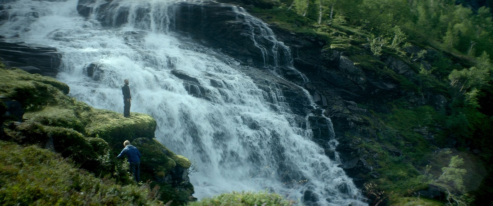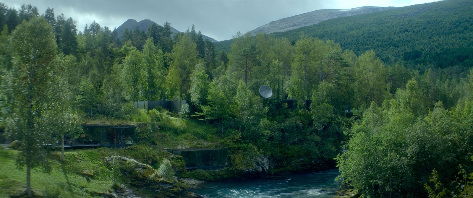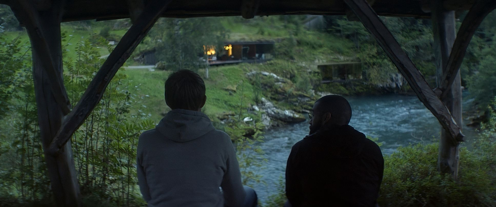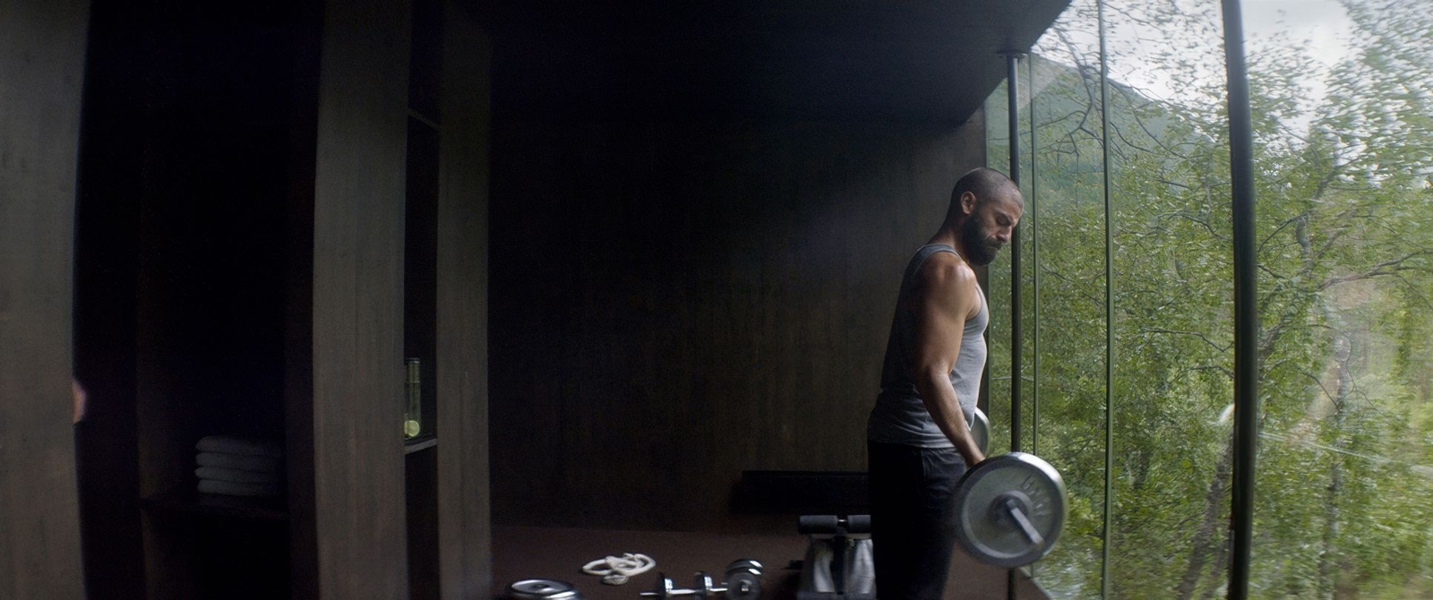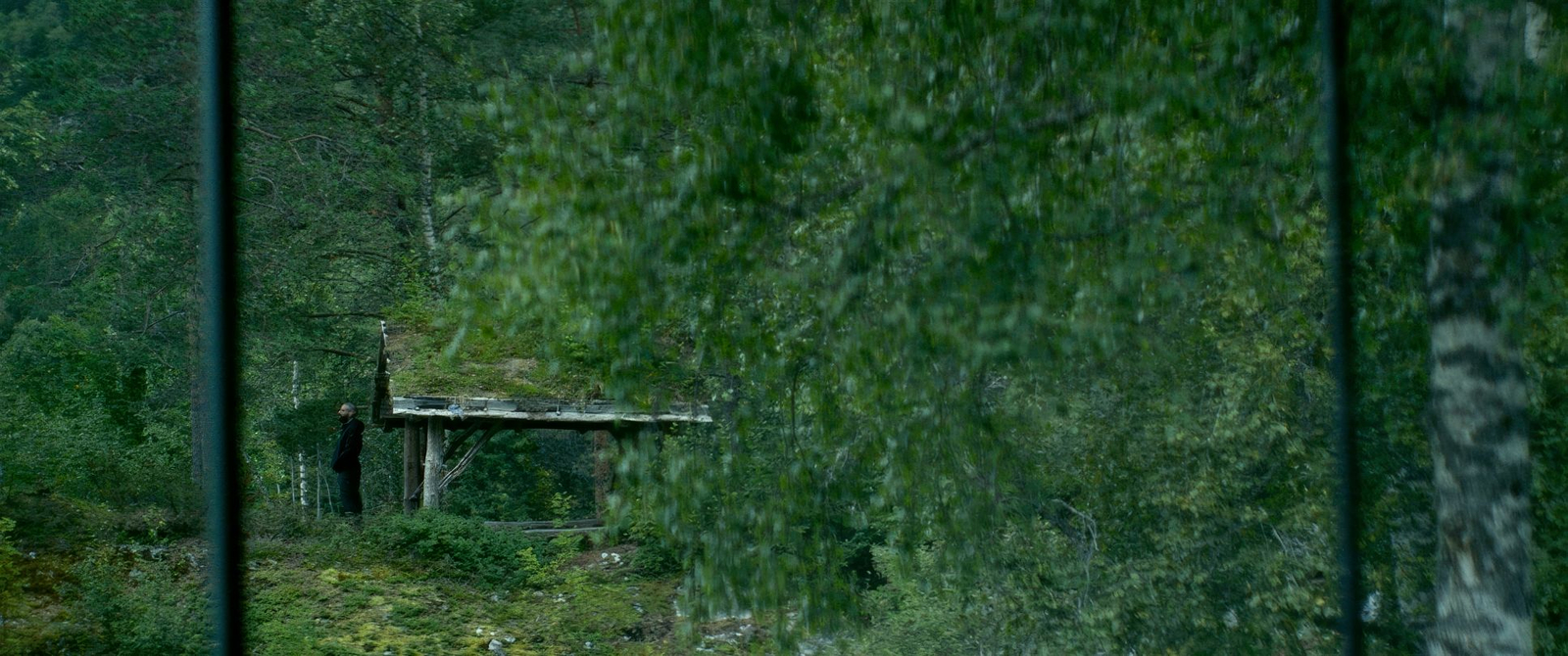 The choice of anamorphic lenses is central to how we perceive the space. Anamorphics inherently distort the edges of the frame and create a specific sense of depth, which Hardy uses to emphasize the isolation of the Juvet Landscape Hotel. Even in wide shots of the Scandinavian wilderness, the framing makes the characters feel minuscule trapped by the very landscape they’re supposed to be “escaping” into.