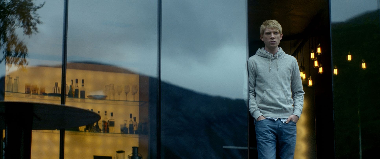 The blocking is exceptionally deliberate, almost like a stage play. Characters are positioned to articulate power dynamics in every frame. Nathan usually dominates the vertical space, while Caleb is often “boxed in” by the architecture. The glass partition in Ava’s room serves as the central axis for the entire film. Hardy and Garland use it to create a physical and emotional barrier that never lets you forget: this is an experiment, not a conversation.