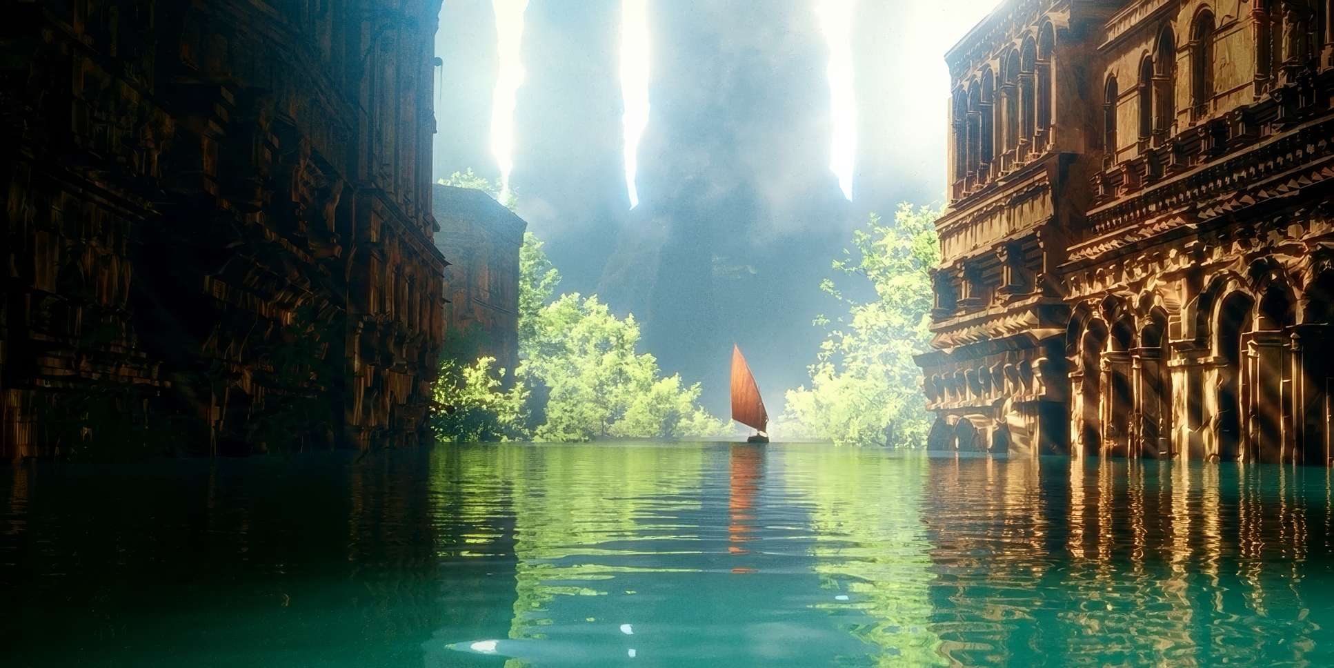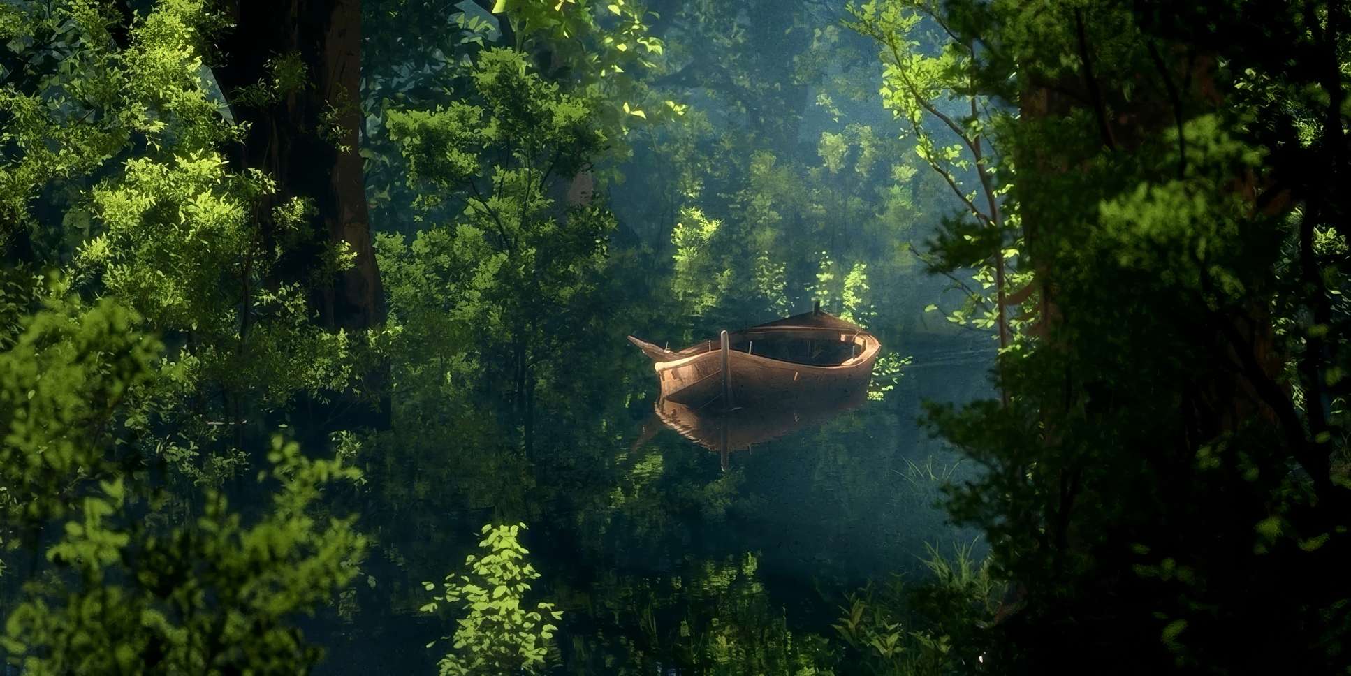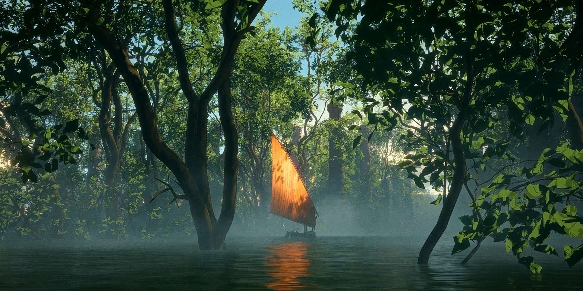 I also loved the use of negative space. With so much water, the sky and the sea often dominate the frame, which heightens that feeling of a journey into the unknown. Even the “eerie moving trees” and the boat stuck in a treetop serve as depth cues and narrative markers. The compositions use leading lines the horizon of the water or the line of a fallen tree to guide your eye even when nothing is moving. It’s a world where verticality is constantly being challenged by the horizontal plane of the water.