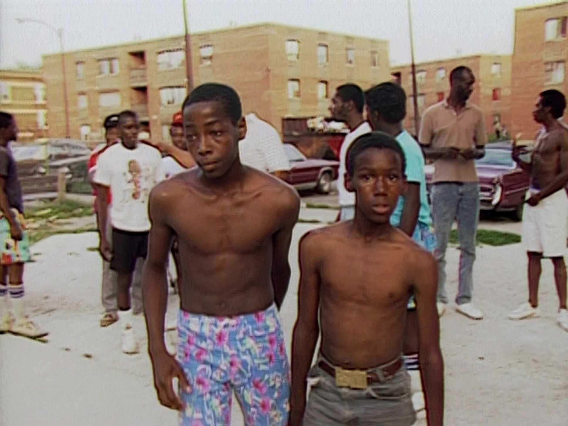 The filmmakers love natural framing peeking through a doorway to catch a private family moment or framing the boys against the crowded sidelines of a gym to show the pressure they’re under. We see tight close-ups that capture Arthur’s ambition or William’s quiet frustration. Then, we get the wide shots of the Cabrini Green projects huge, indifferent structures that make the boys look small. It’s a visual juxtaposition: individual dreams versus systemic challenges. The “imperfections” a subject slightly off-center or a momentary obstruction actually make it feel morereal.