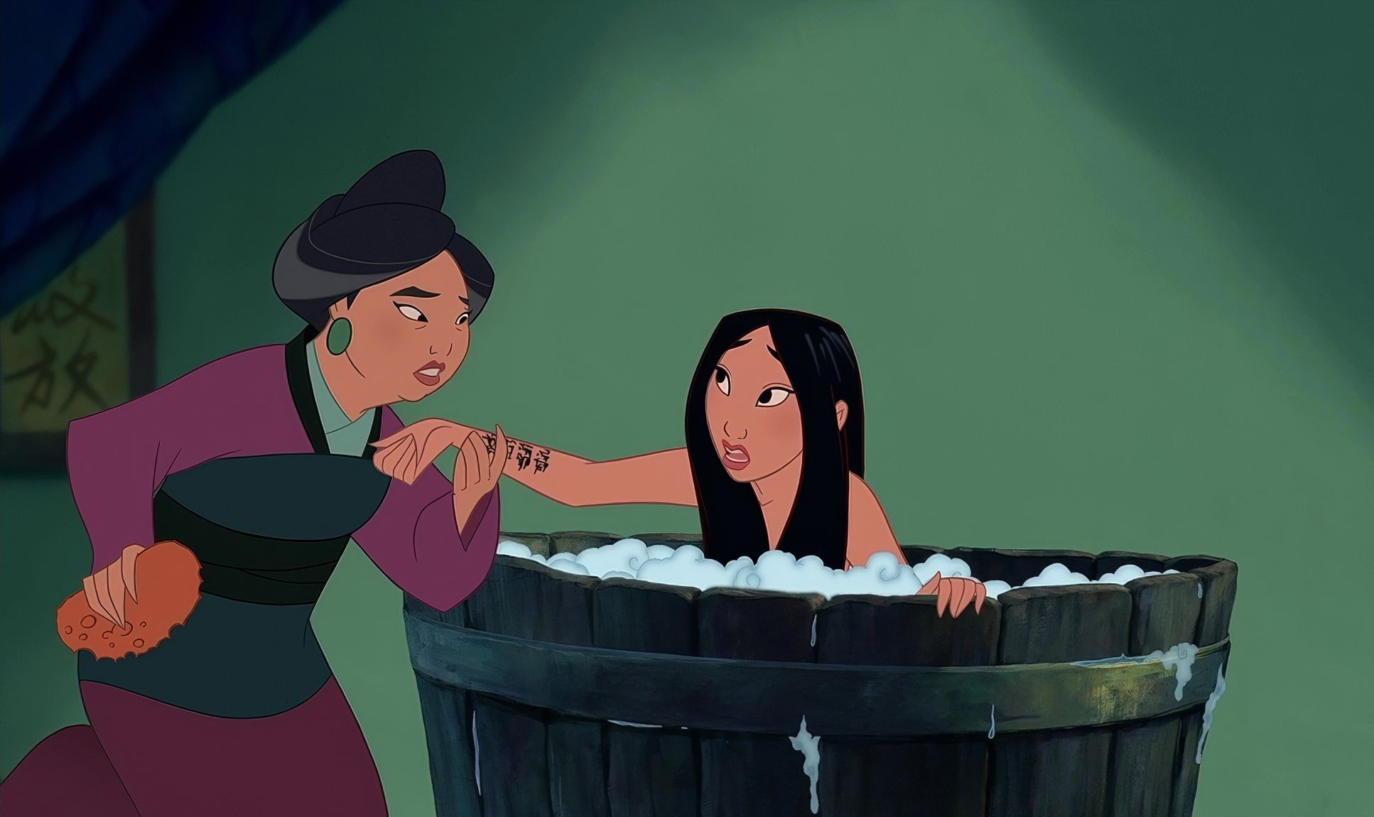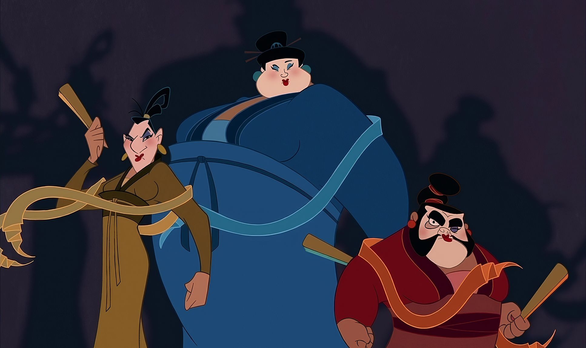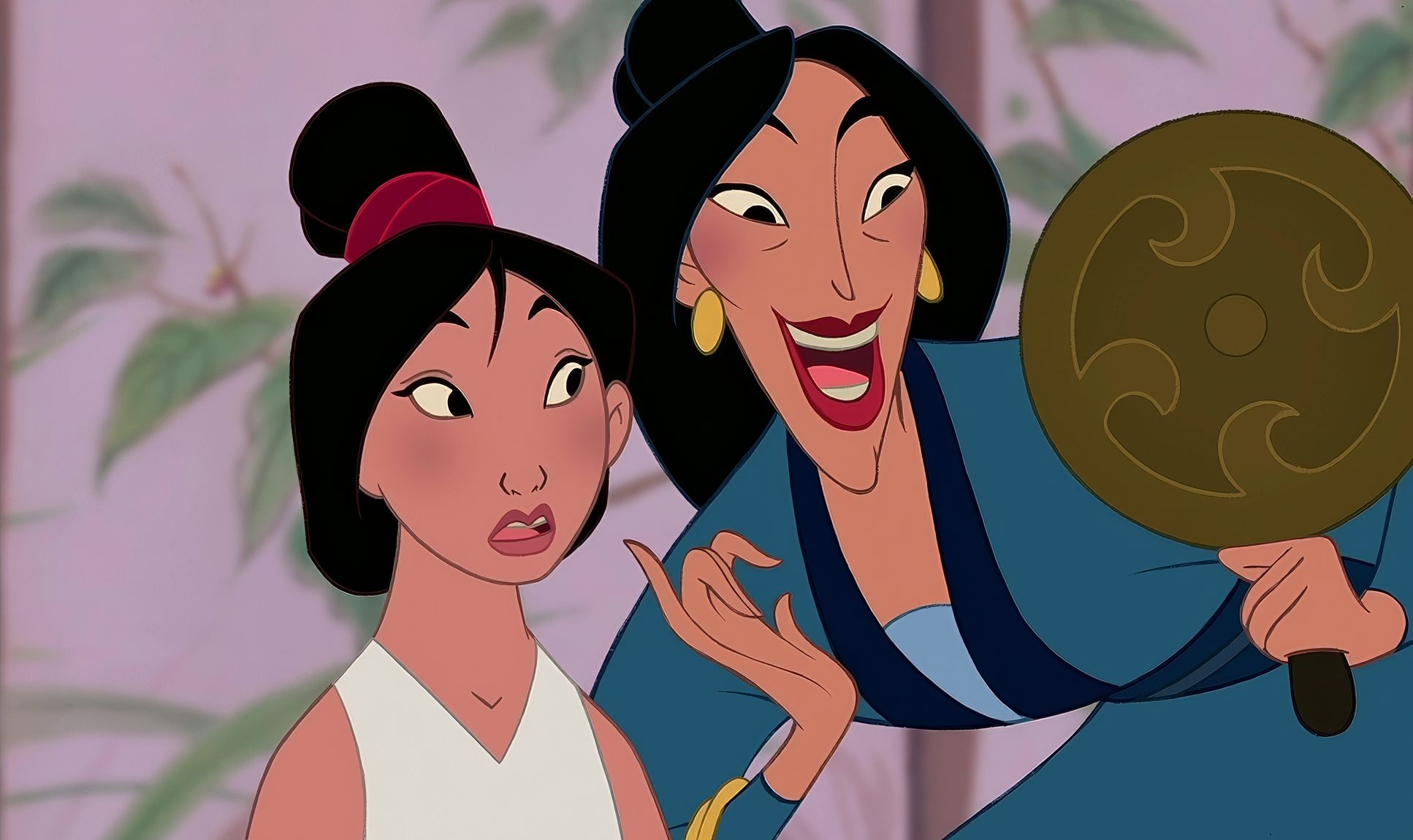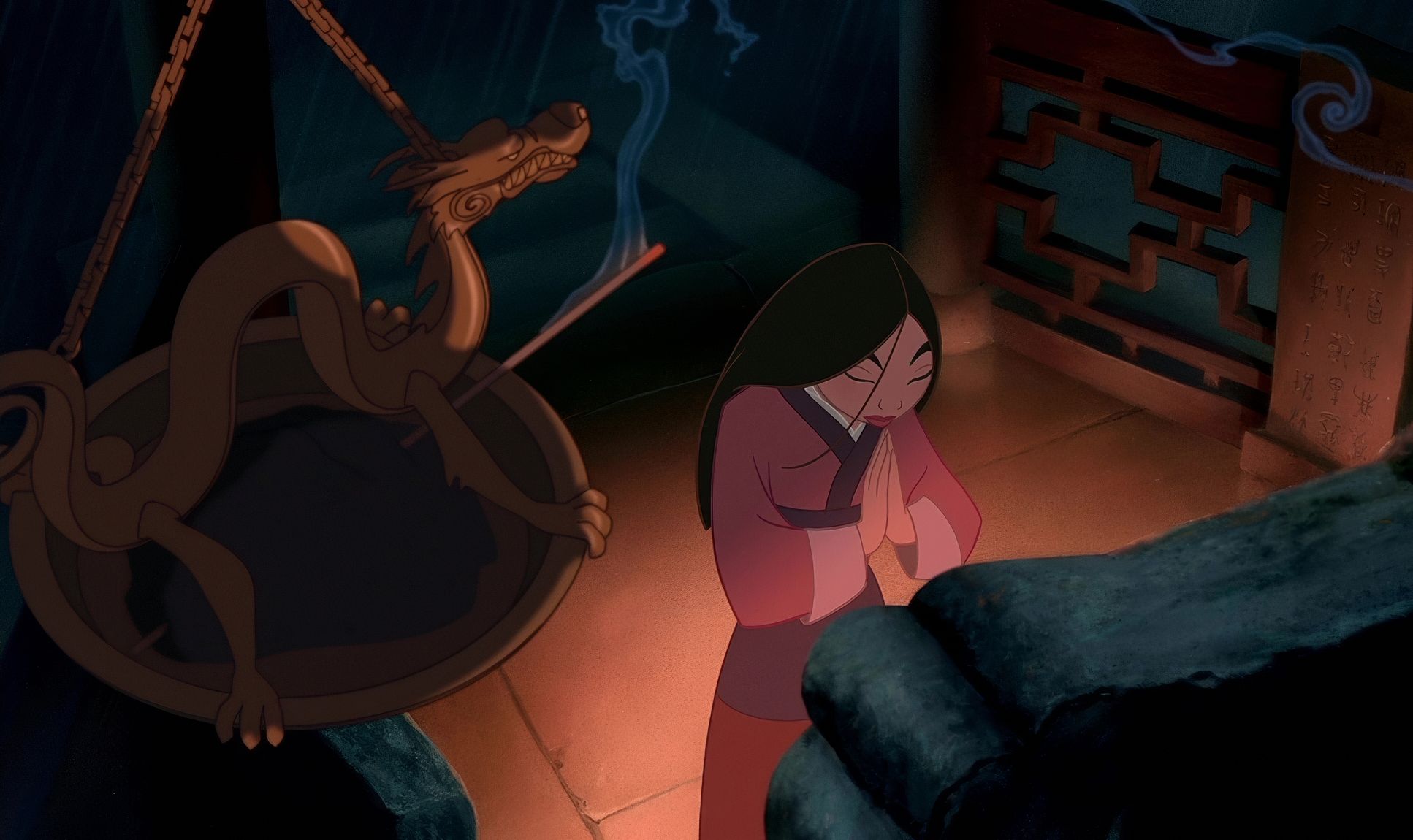 Mulan excels at using framing to underscore character psychology. Early on, the film establishes that Mulan simply doesn’t fit. She’s often framed slightly apart from groups, her movements are less refined than those around her, and she’s constantly placed in opposition to strict, ordered lines especially during the Matchmaker sequence.