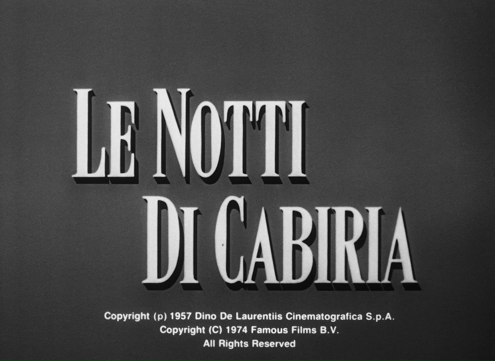 A curated reference archive of cinematography stills from Nights of Cabiria (1957). Study the lighting, color grading, and composition.