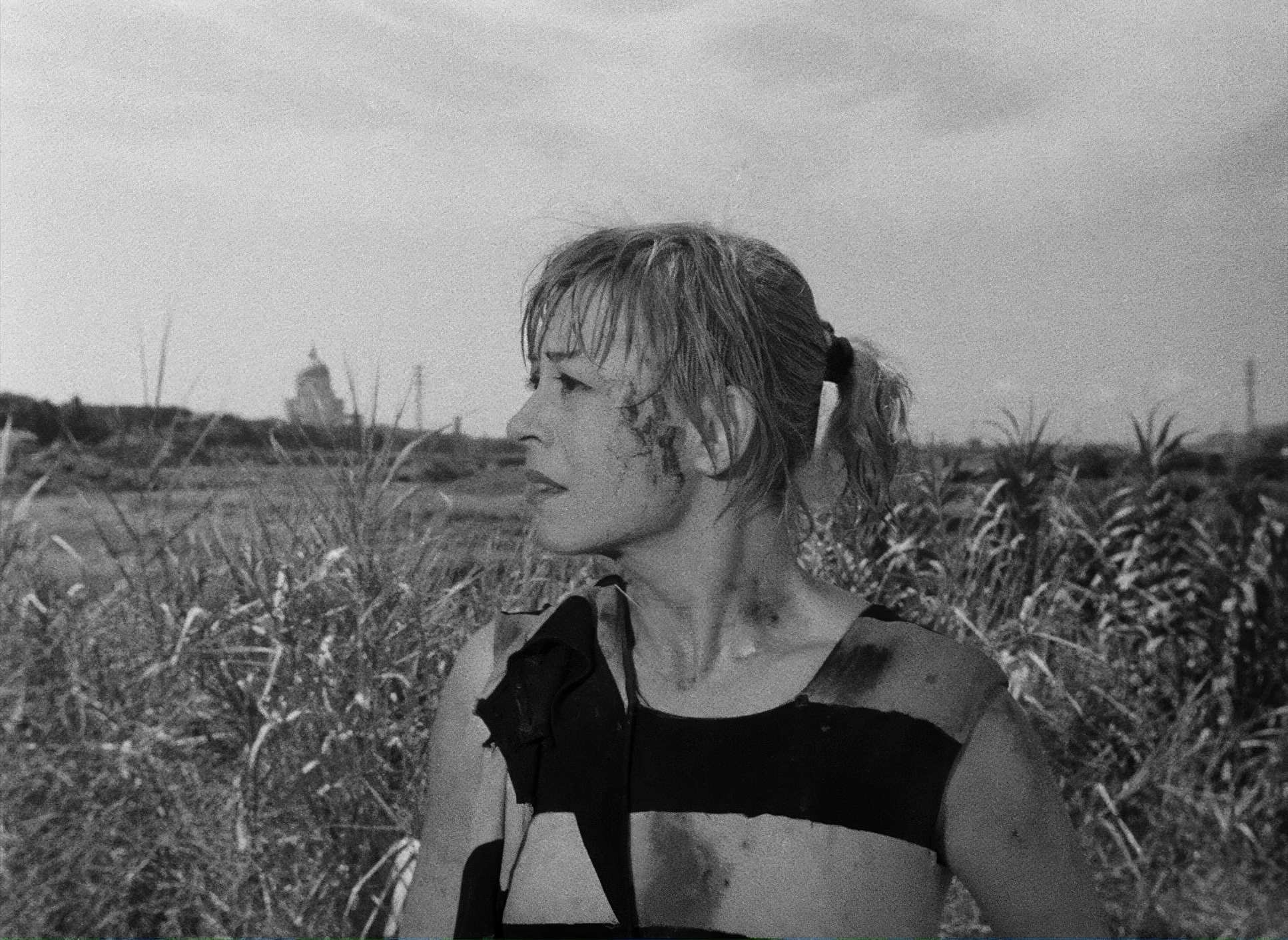 The camera in Nights of Cabiria acts like an empathetic, silent companion. Take the opening: we start with extreme long shots of Cabiria before the camera patiently moves in. That initial distance is brutal; it makes the moment her lover pushes her into the river feel even more shocking because she looks so small and vulnerable against the landscape.