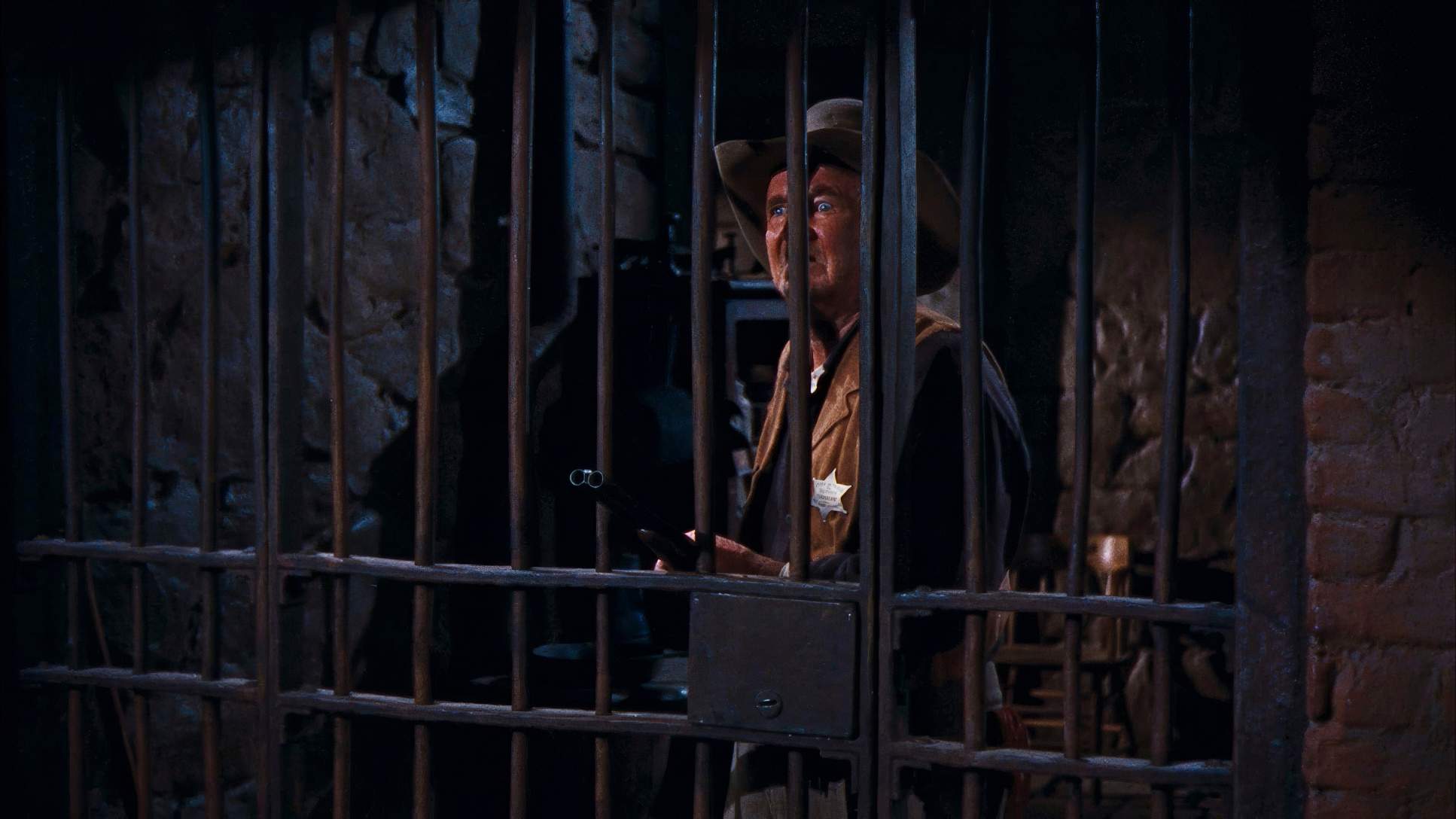 Hawks wasn’t interested in the vast, exposed vulnerability you see in most Westerns. He wanted to visually translate the psychological weight of being cornered. By framing John T. Chance and his motley crew within these strongholds, the visual emphasis shifts from spectacle to intimacy. It’s a claustrophobic defiance. Every shot reinforces the idea that the world outside those walls is hostile, making the internal space of the jailhouse feel like the only sanctuary left in Texas.