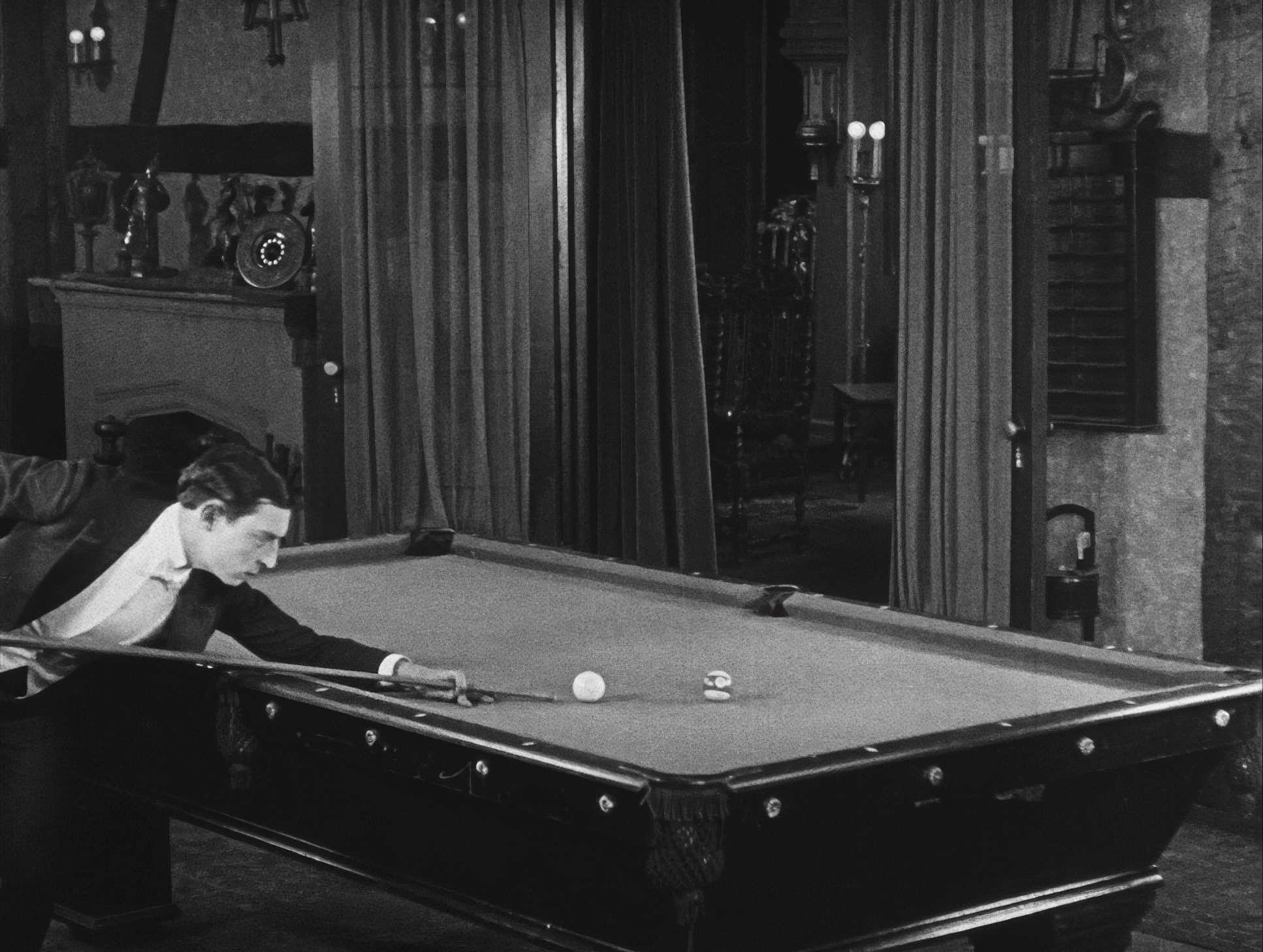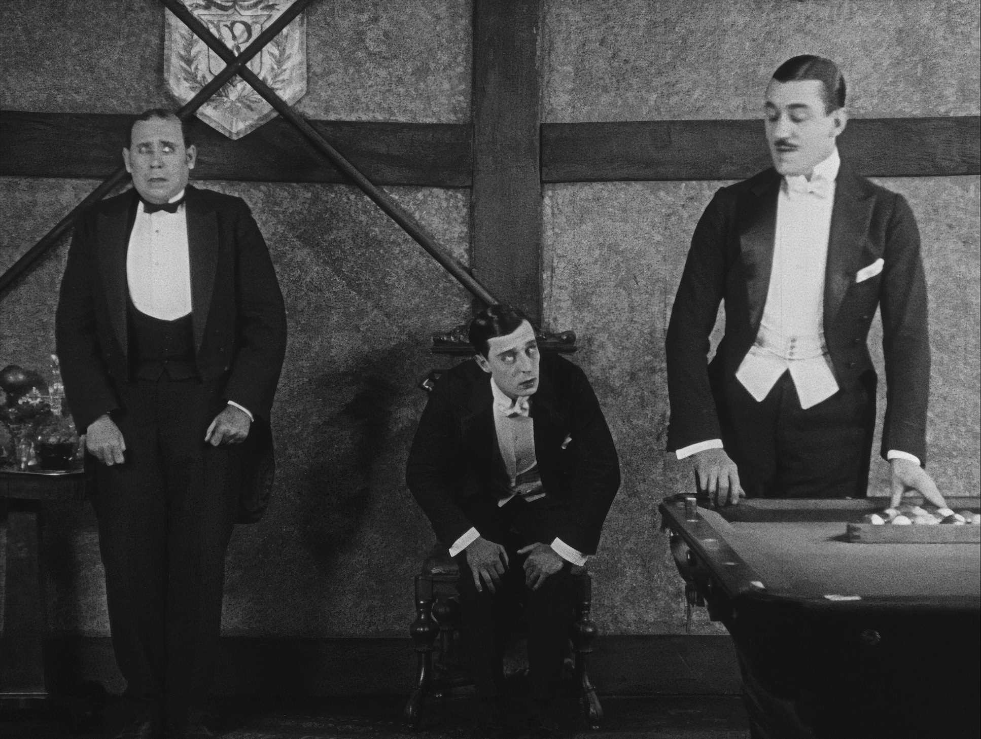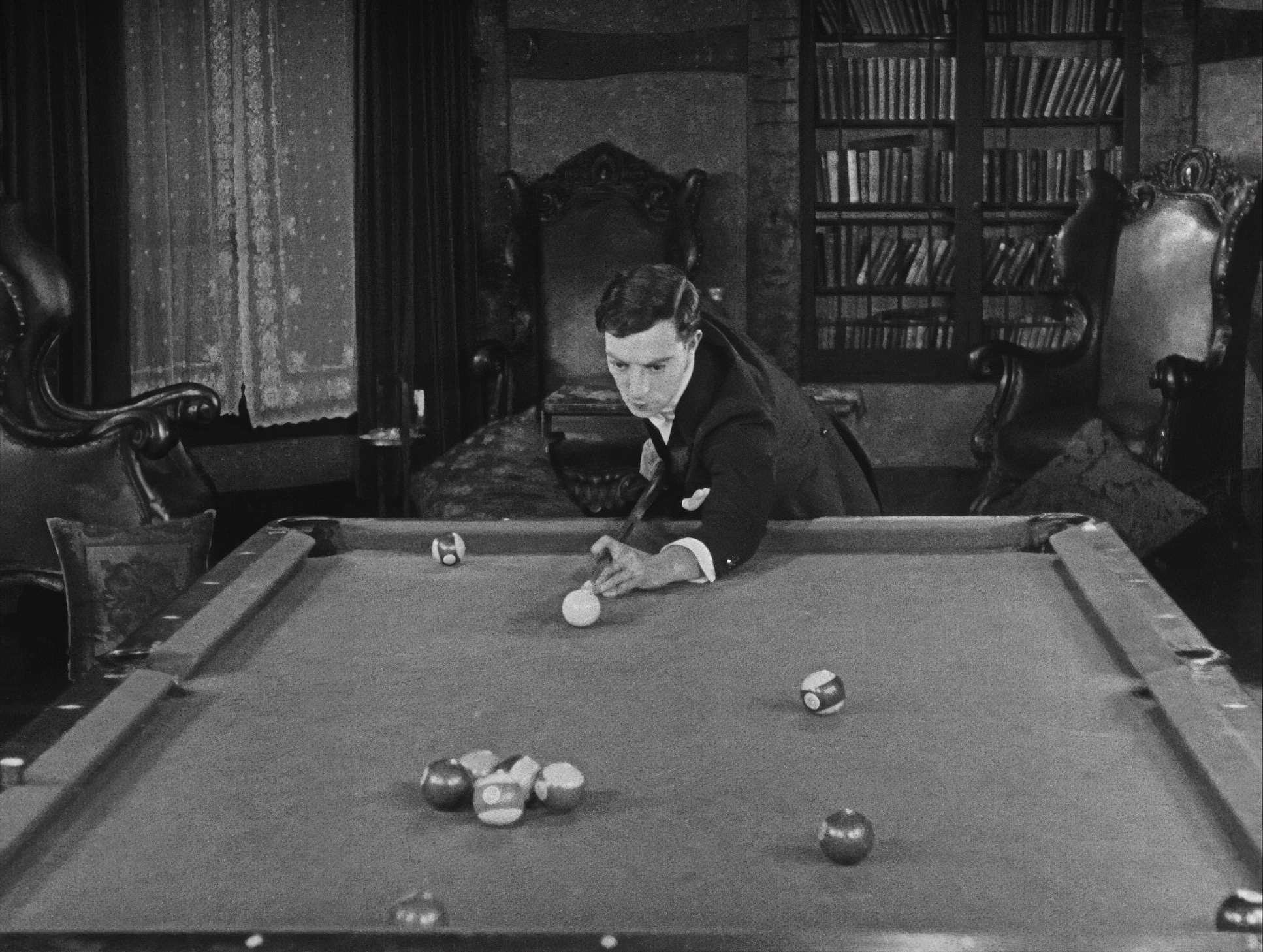The blocking is essentially a ballet. Every movement by Keaton and his cast is frame-perfect. Look at the billiard scene. That isn’t clever editing; that’s Keaton’s vaudeville training meeting a perfectly positioned camera. The lens stays wide so you can see the “impossible” ricochets happen in real-time. It forces the audience to believe their eyes.