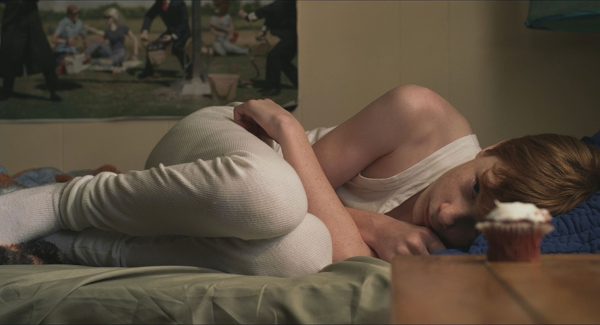 This is where I really get excited as a colorist. Ian Vertovec handled the grade here, and it’s a masterclass in emotional logic. The palette is grounded in muted, desaturated tones lots of institutional greens and grays.