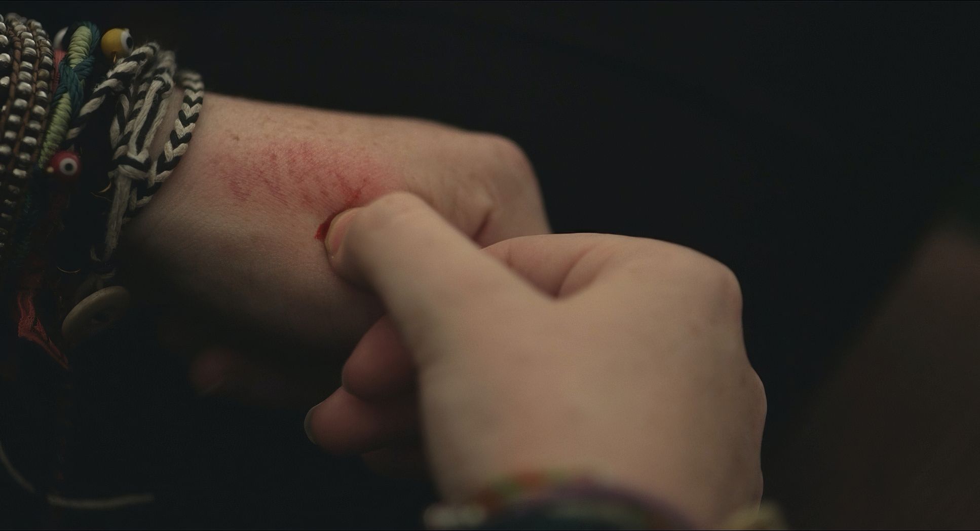 But here’s the pro move: the skin tones stay vibrant and warm. Vertovec clearly prioritized protecting those red and orange channels so that the humans look “alive” even in a sterile environment. The contrast is gentle, not punchy. There are no inky blacks or blown-out highlights. Instead, the roll-off is soft, giving it a “print-film” feel that takes the digital edge off the RED sensor. It’s a grade that supports the theme of empathy it doesn’t scream at you, but it feels deep.