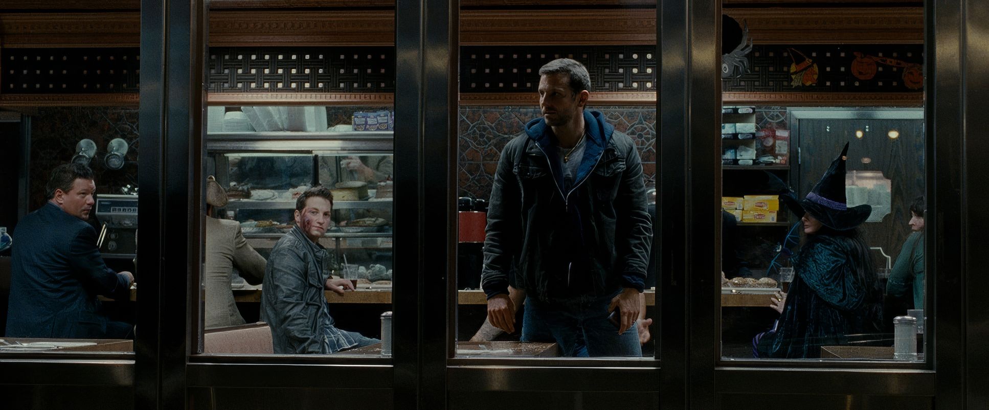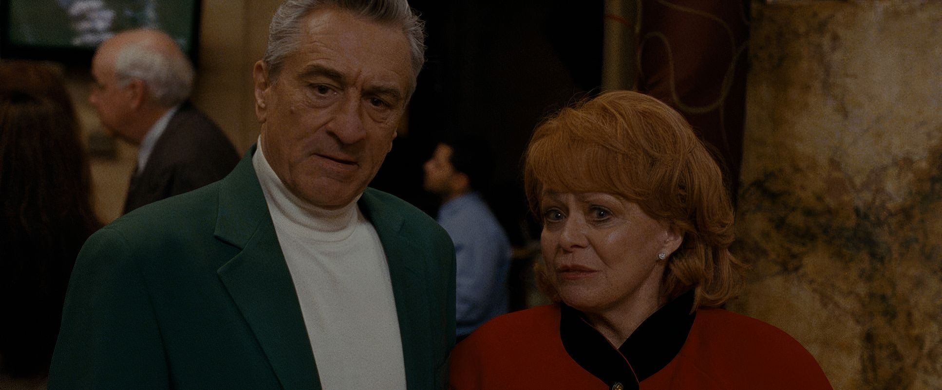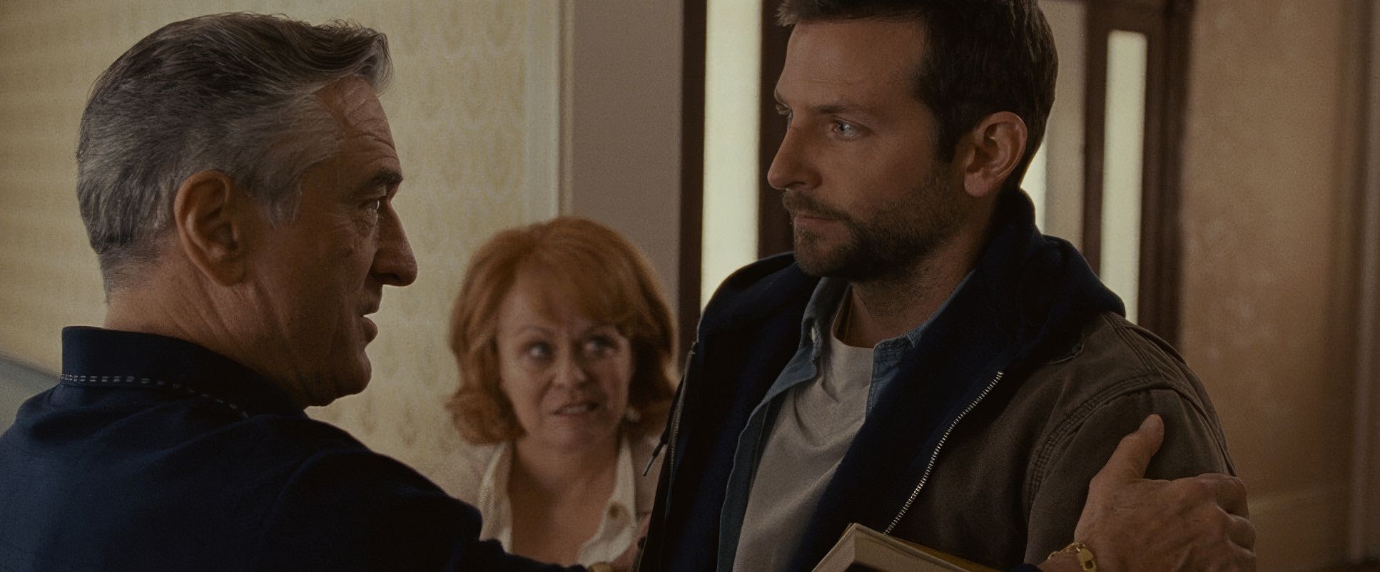 Because they were shooting handheld with Master Primes, the blocking feels wonderfully unscripted. Characters move in and out of each other’s personal space, and the camera just follows. It feels improvisational. When Robert De Niro and Bradley Cooper are in a scene, the physical interplay the gestures and the posture is just as important as the dialogue.