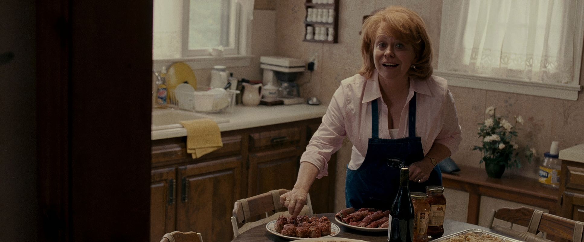 The use of wider focal lengths (even for close-ups) means we never lose the sense of the environment. We see the wood paneling of the walls and the clutter of the living room even when we’re focused on the actors. This choice makes the world feel “lived-in.” The blocking doesn’t feel like actors hitting marks; it feels like a family navigating a small house they’ve lived in for thirty years.
