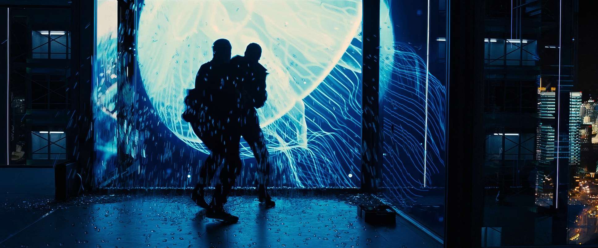 This is where Deakins’ genius becomes undeniable. His approach to motivated lighting in Skyfall is a case study for any DP. Take the Shanghai skyscraper sequence one of my favorite moments in modern cinema. The entire scene is driven by the pulsating, artificial blue glow of a digital billboard. It creates this otherworldly, abstract arena where silhouettes do the talking.