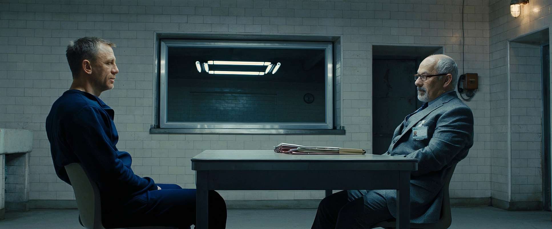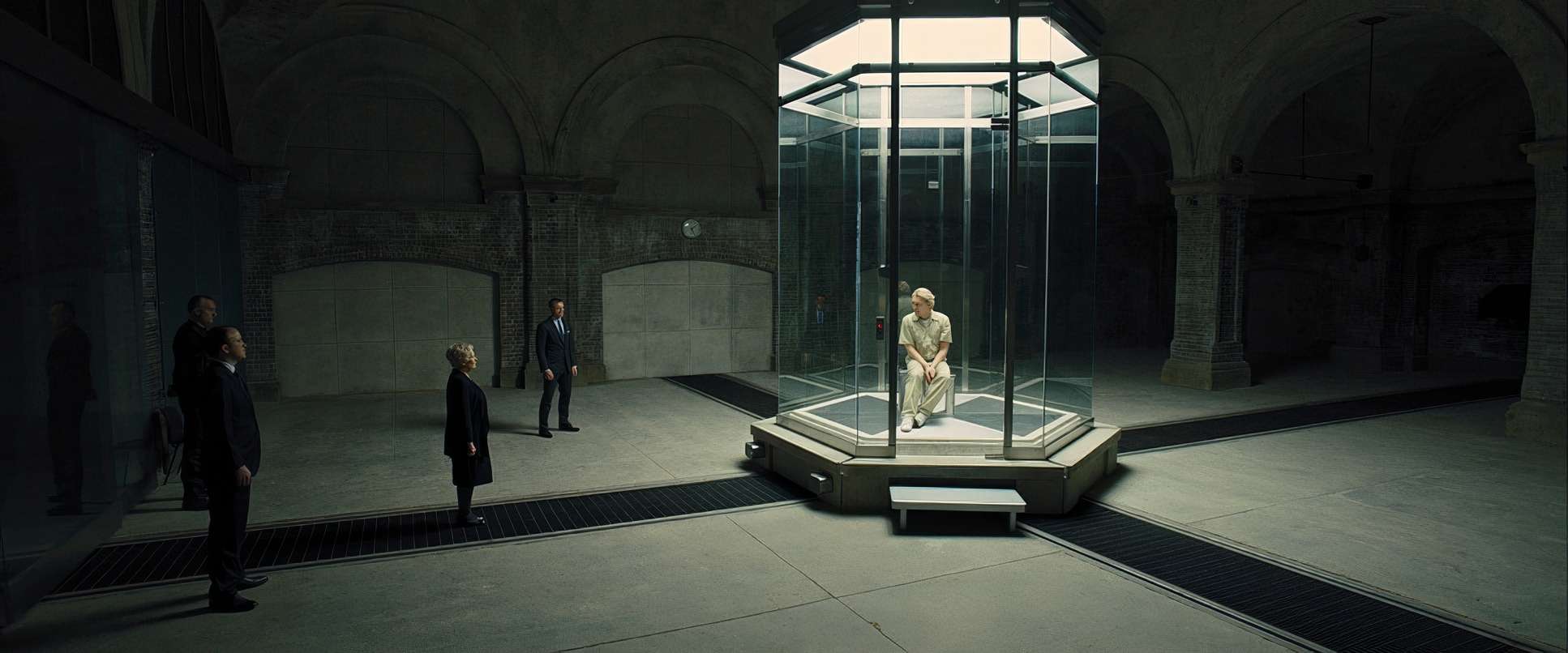 The blocking is equally intentional. The “mother-son” dynamic between Bond and M is told through their spatial relationship. Early on, the blocking suggests distance and subservience; as the film progresses and their bond deepens, the physical intimacy on screen shifts. Even Silva’s theatrical entrance into the interrogation room is a masterclass in blocking he commands the plane of depth, slowly moving from the background to the foreground to establish total dominance over the frame.