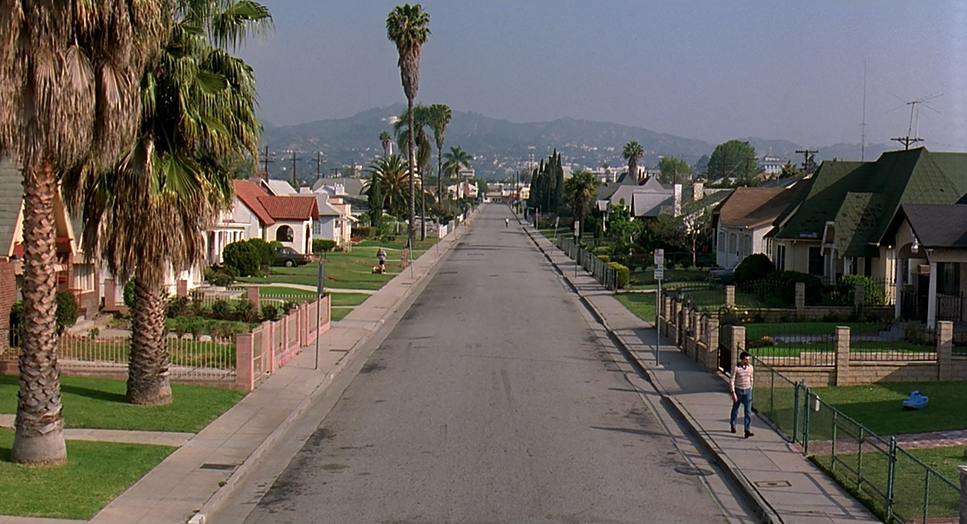 Deakins’ lighting here is motivated, yet heightened. For the L.A. exteriors, he embraces the harsh, direct sun, creating strong shadows and a vibrant, almost bleached feel. It gives the film an authentic texture that prevents it from feeling like a sitcom.