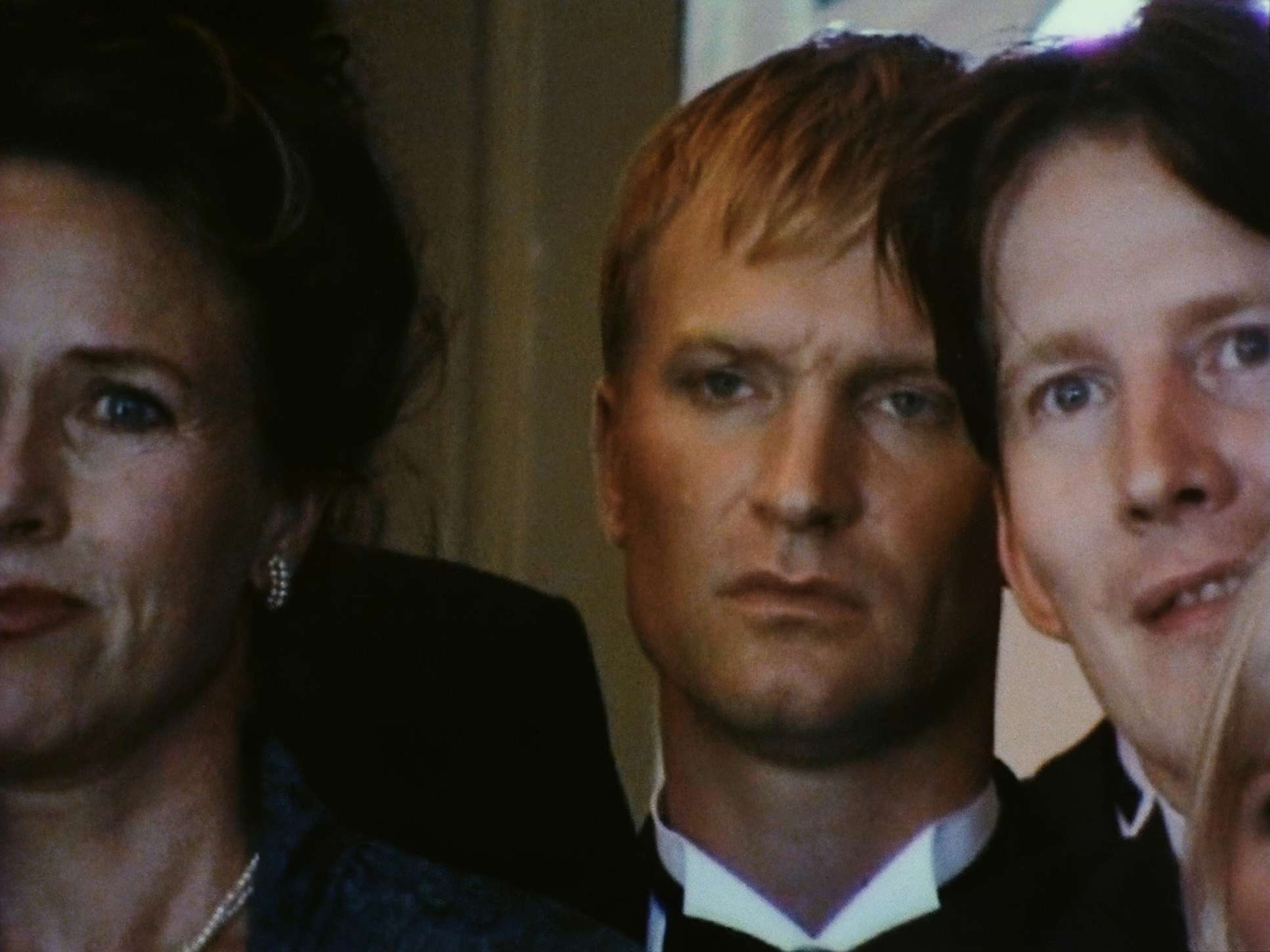 The camera is constantly jostled, peeking through gaps in the crowd or darting from face to face. Vinterberg talked about being “a part of the emotion with your arm,” and you can feel that. During the dinner scene, especially after Christian’s first toast, the camera becomes as unsettled as the guests. It bobs and weaves, preventing us from ever feeling like safe, passive observers. It keeps you on edge, forcing you to squint and scrutinize the chaos, mirroring the breakdown of the Klingenberg family in real-time.