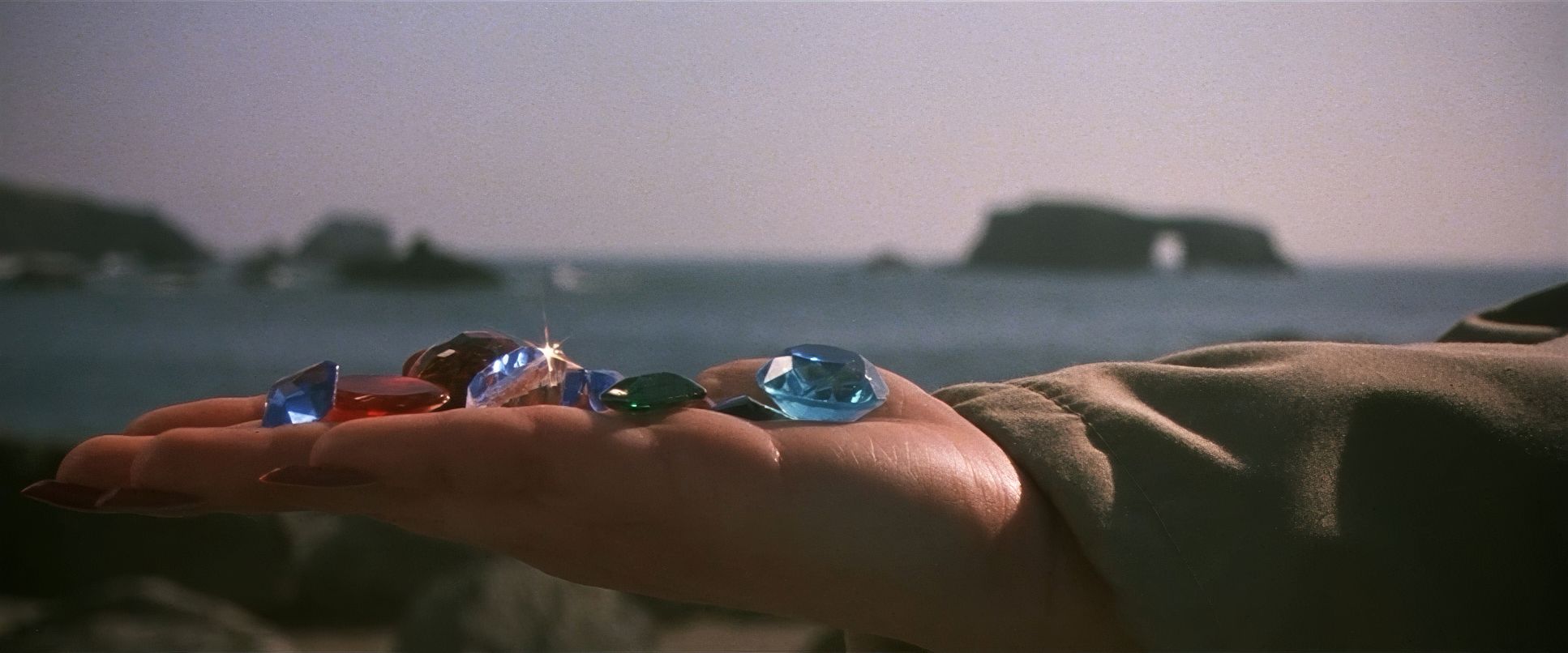 The color isn’t about “pop”; it’s about density. The shadows hold a surprising amount of detail without looking washed out, giving the caves a tactile, painterly depth. Hue separation is subtle the warm gold of the treasure vs. the cool, damp blue of the cavern walls. The inherent grain structure of the 35mm stock adds a texture that signals “adventure” to our brains. There’s an honest simplicity to the color here; it feels like a photograph, not an illustration. It’s the kind of look where you can almost smell the damp salt air and the old wood of the ship.