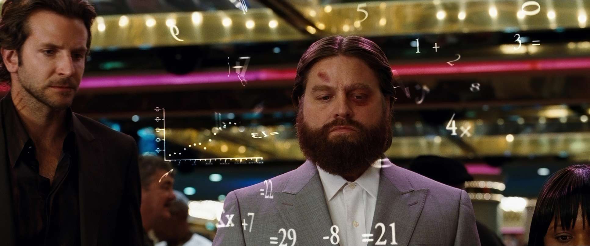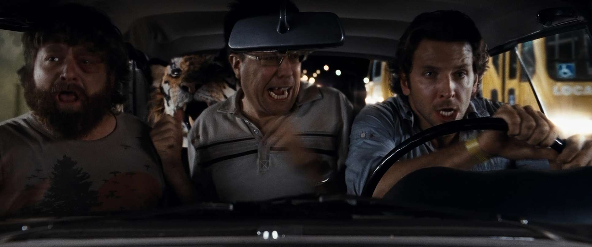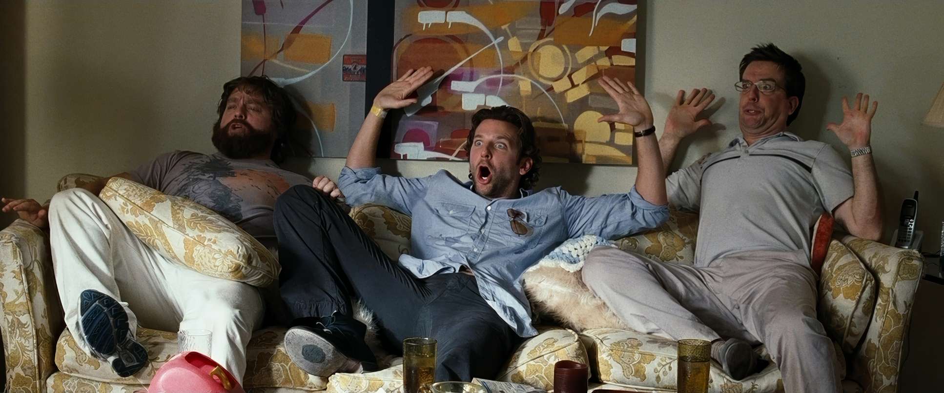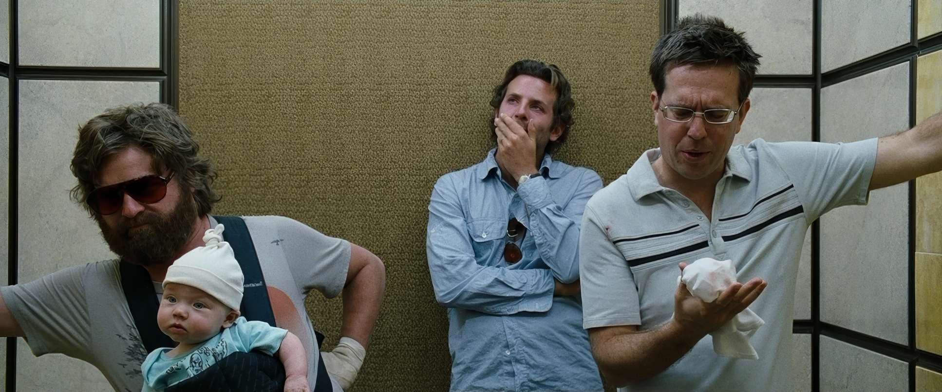The way Sher and Phillips block the trio is essential to the comedy. Phil (Bradley Cooper) usually takes the center, authoritative position. Stu is often framed to look physically smaller or more boxed-in to show his anxiety. And then there’s Alan.