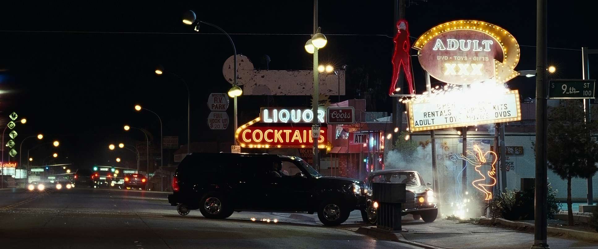 As a colorist, I love that they went with Kodak Vision 2 500T (5218) stock. Film handles the extreme dynamic range of Vegas the piercing neon lights against deep desert shadows with a natural highlight roll-off that digital struggled with at the time. The choice of Primo primes gave them a clean, sharp image that didn’t distract from the physical comedy, but still retained that organic “movie” texture that makes the film feel grounded and “expensive.”