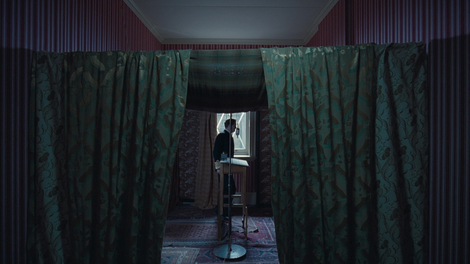 Instead, he “short-sights” the characters. He shoves Bertie to the extreme edge of the frame, leaving a massive amount of dead space (negative space) behind or beside him. Psychologically, this is brilliant. It makes Bertie look small. It makes the room look like it’s swallowing him whole.