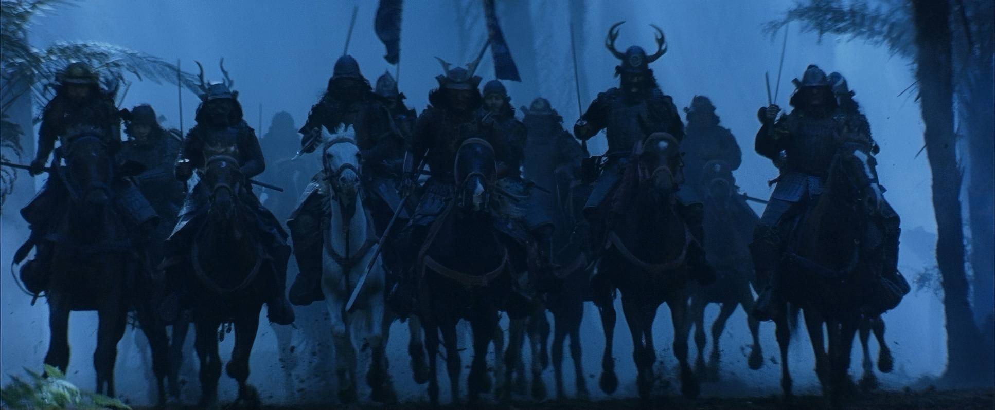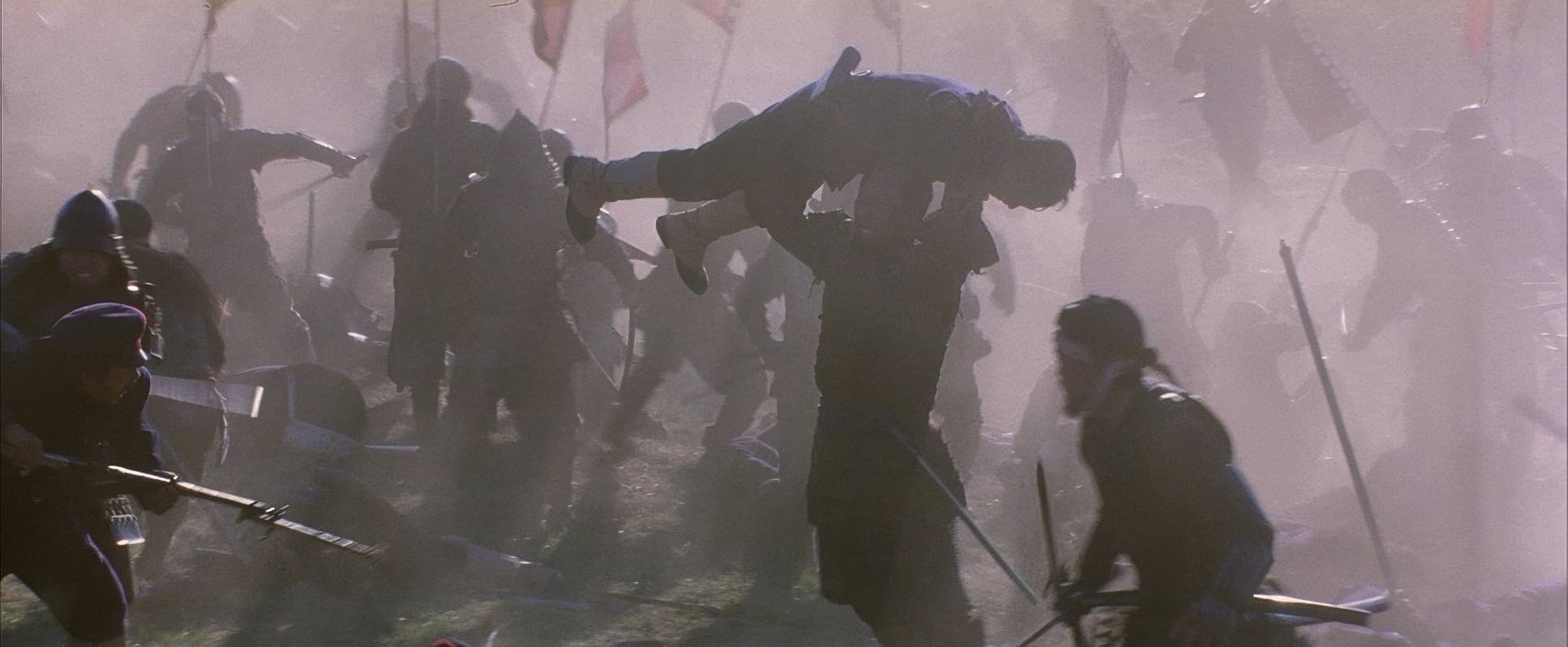 The movement in this film is all about controlled dynamism. For the battles, Toll uses sweeping cranes and wide tracking shots that capture the sheer visceral chaos of the front lines. There’s a detached, almost operatic perspective to the Samurai’s final charge that makes it feel like a piece of brutal art.