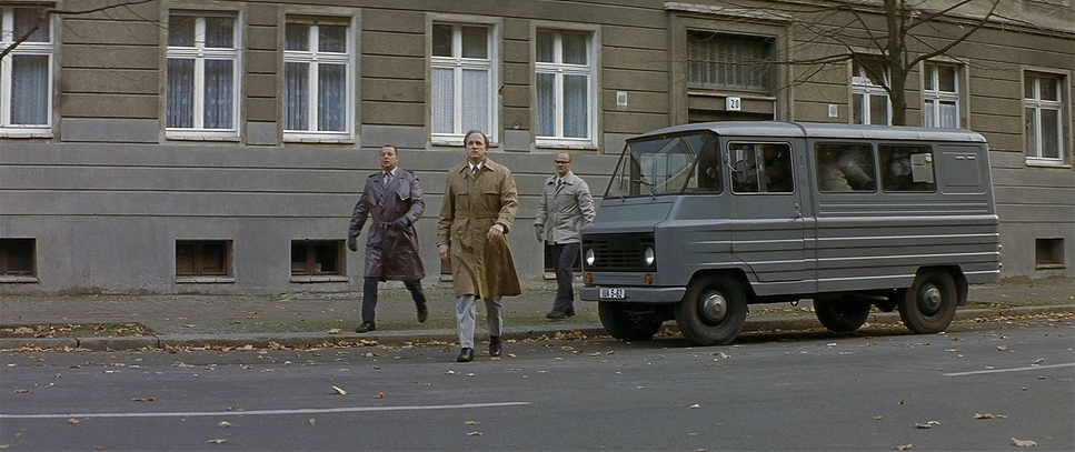 The lighting is where the mood is truly set. Bogdanski avoids the polished “Hollywood” look for something much grittier. It’s a low-key lighting setup, relying heavily on practical sources and soft, gloomy window light. The Stasi headquarters are lit with harsh, unflattering fluorescents that cast a greenish-cyan spill, draining the blood out of the actors’ faces.