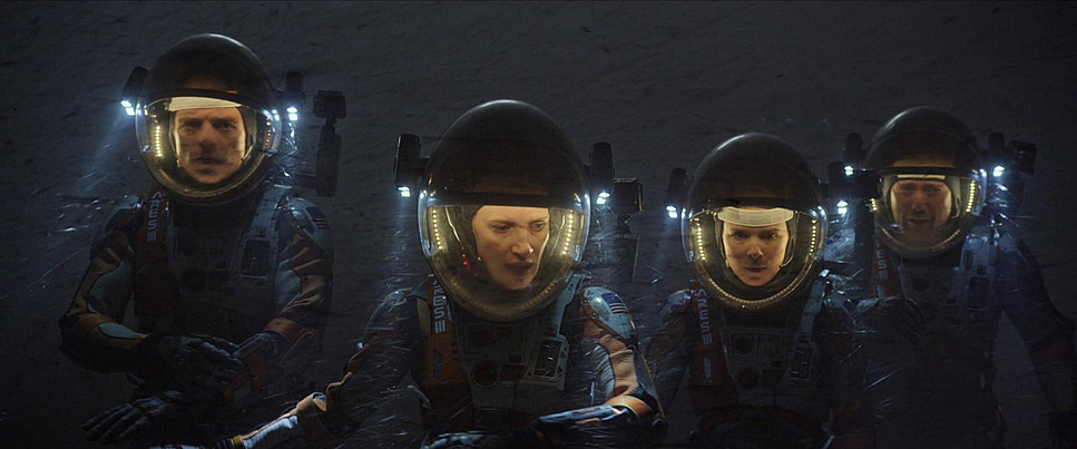Blocking further emphasizes this. On Mars, Watney is almost always blocked in the center of a void. Inside, he is constantly moving, interacting with his environment. In contrast, the Earth-based scenes at NASA feature complex group blocking people standing in clusters, looking at screens, debating. The visual language creates a binary: Solo struggle vs. Collective effort.