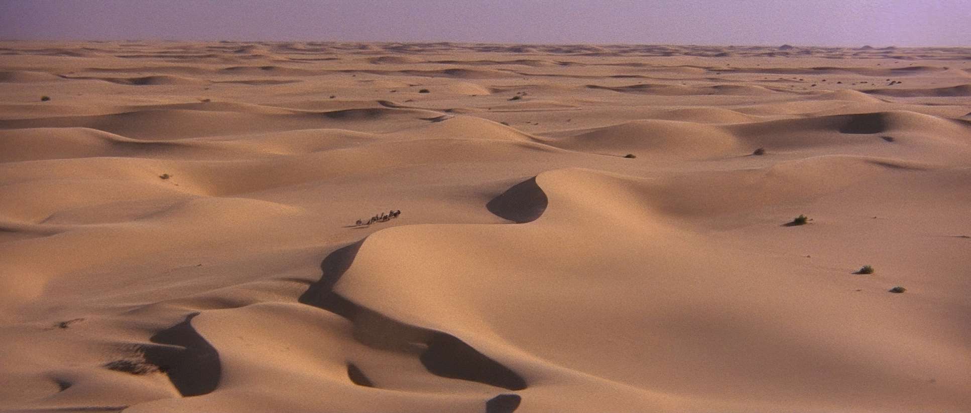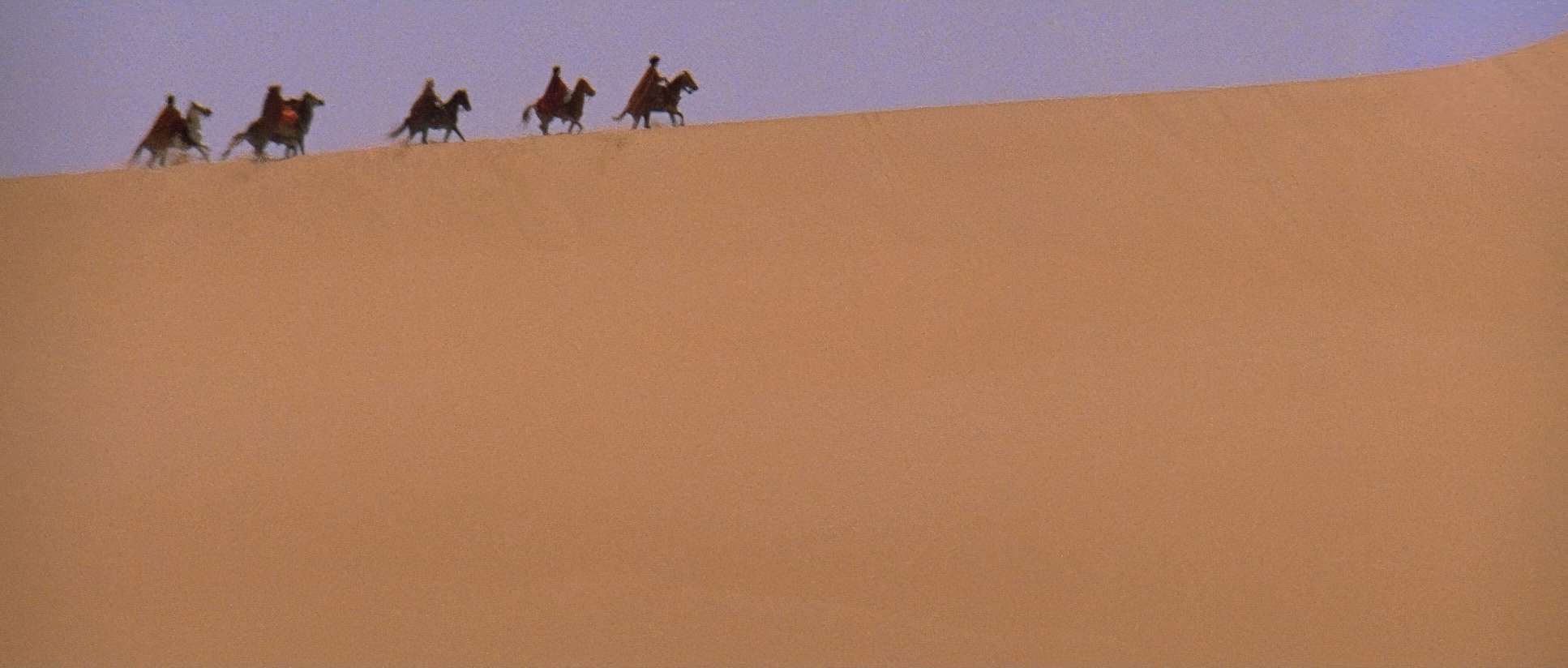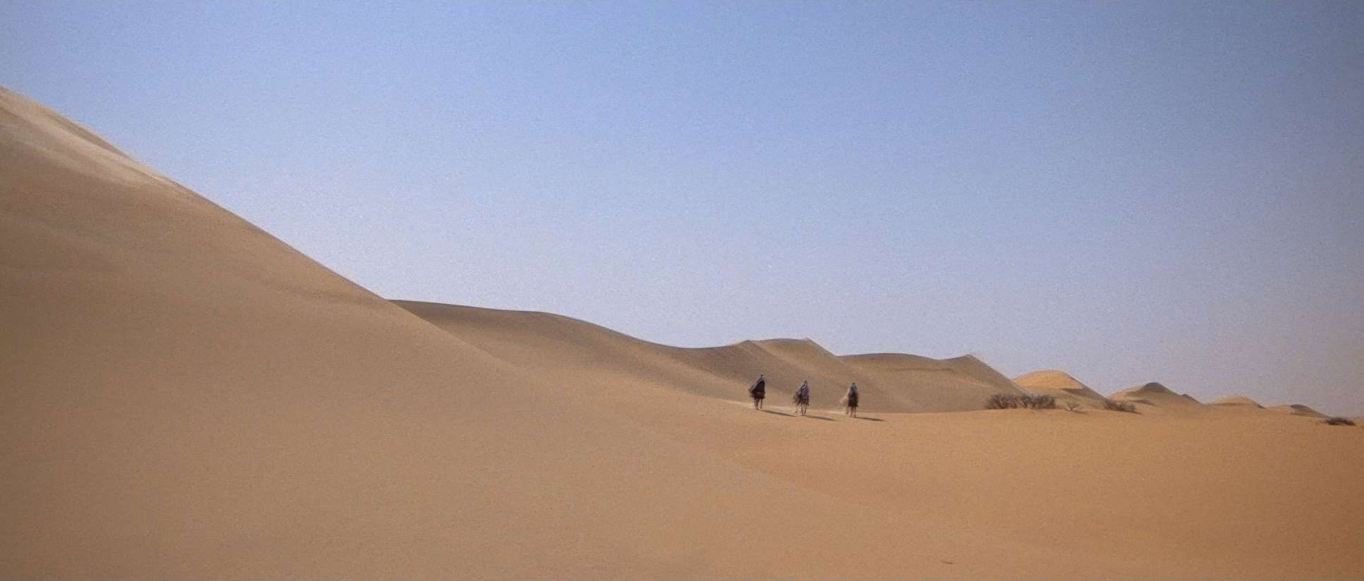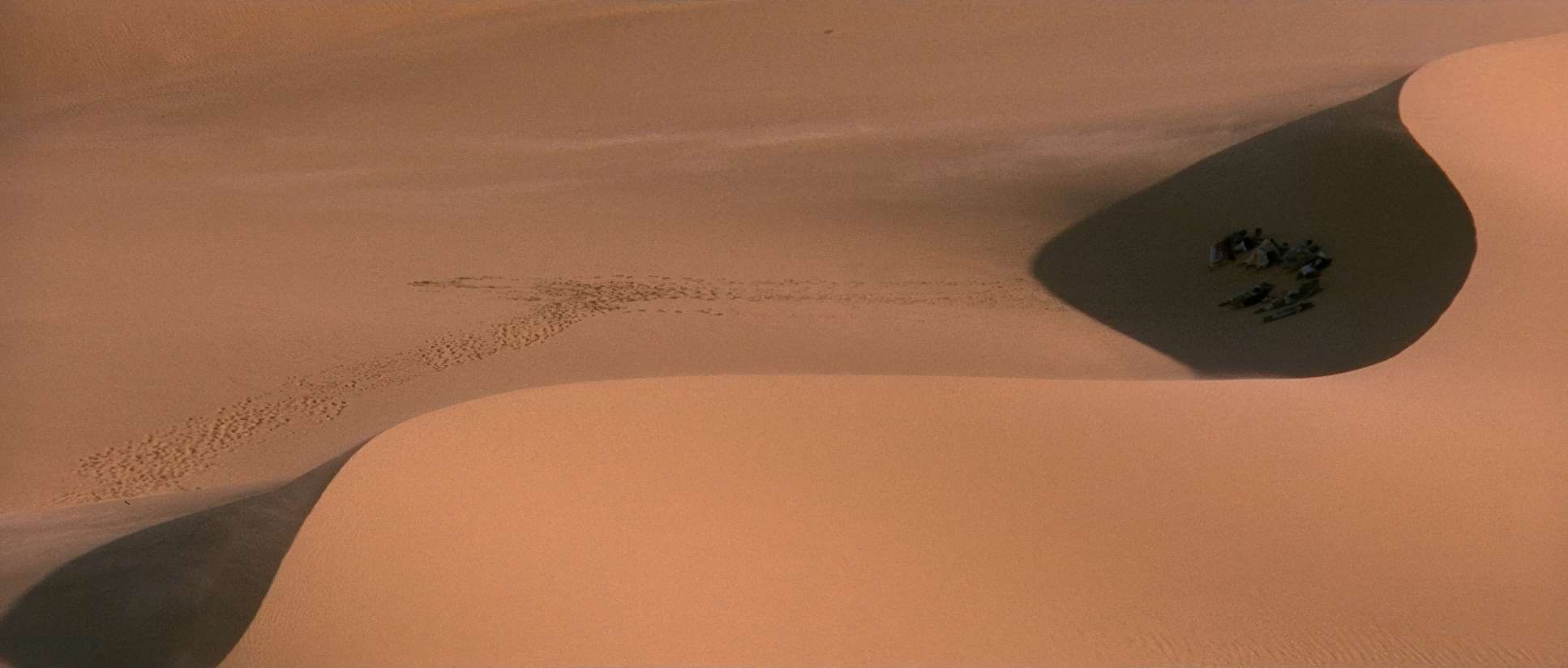 The frames are bold. They used the 2.35:1 anamorphic aspect ratio to its full potential. You often see human figures dwarfed by massive dunes, which sells the idea of a small group of people taking on the world.