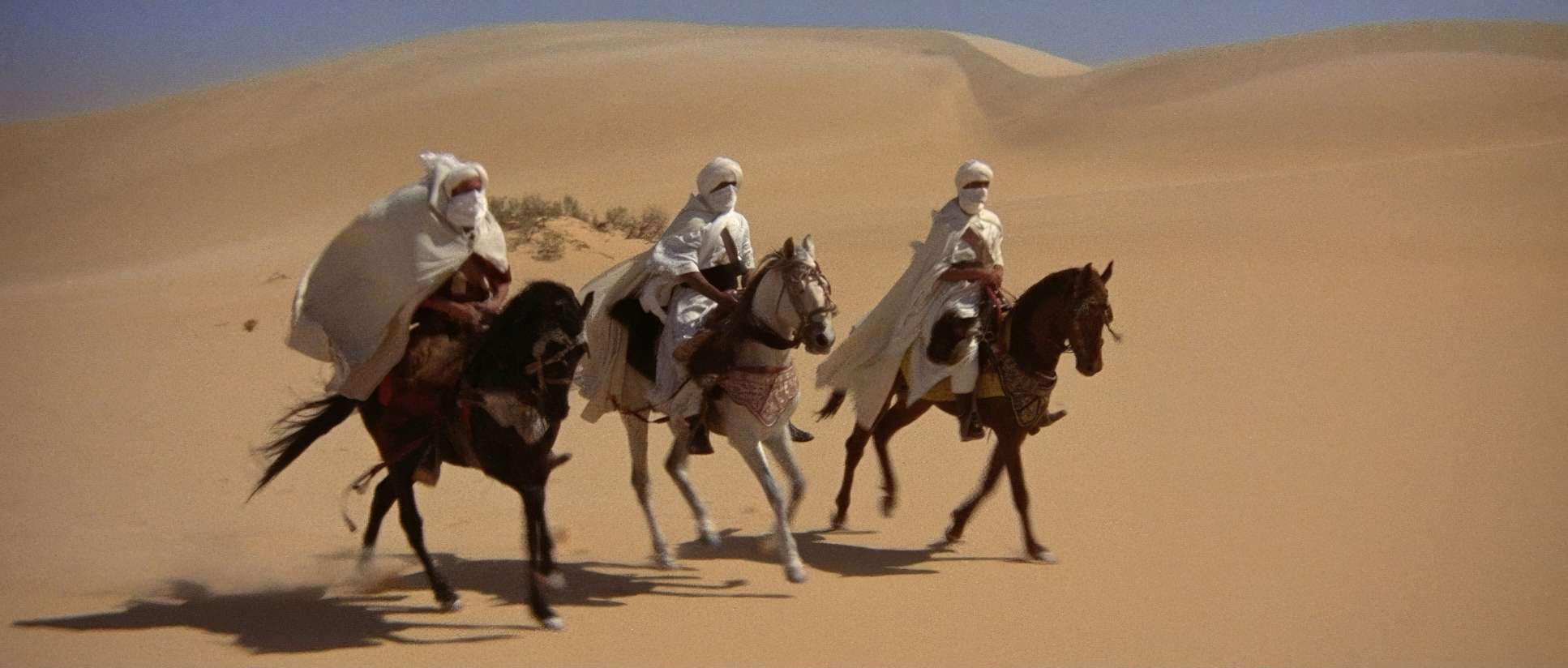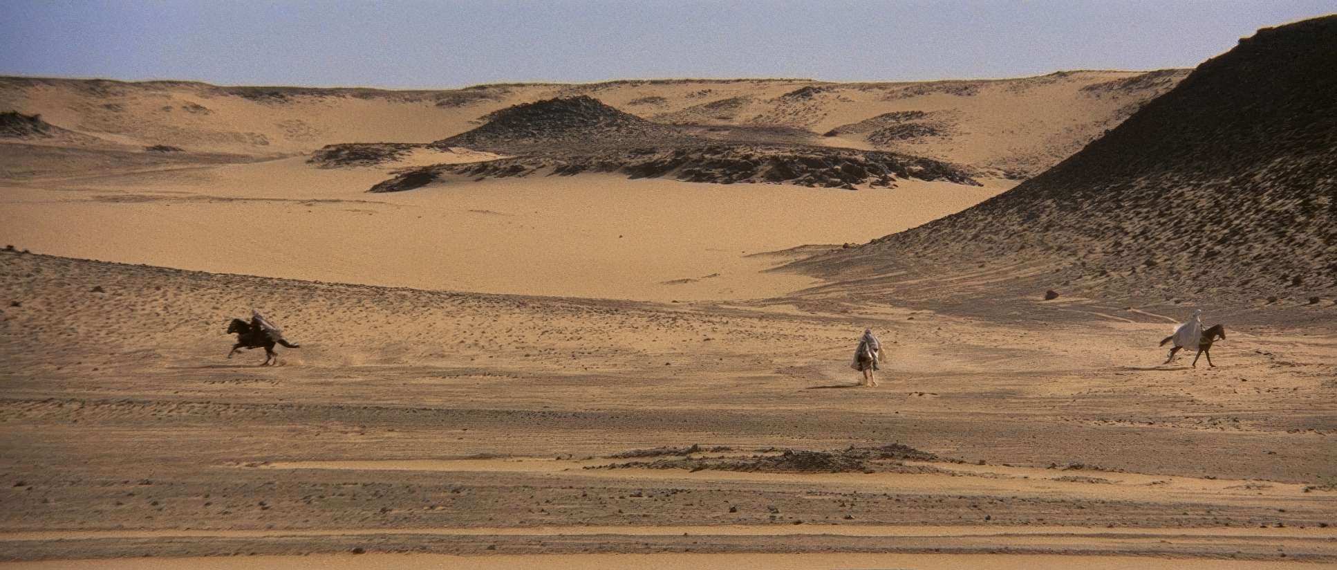 You have to respect the logistics of this shoot. 1976. 35mm film. Morocco and Libya. Immense heat, sand getting into every gear and sprocket, and no digital playback to check if you “got the shot.”