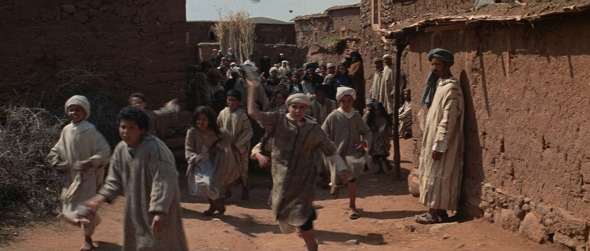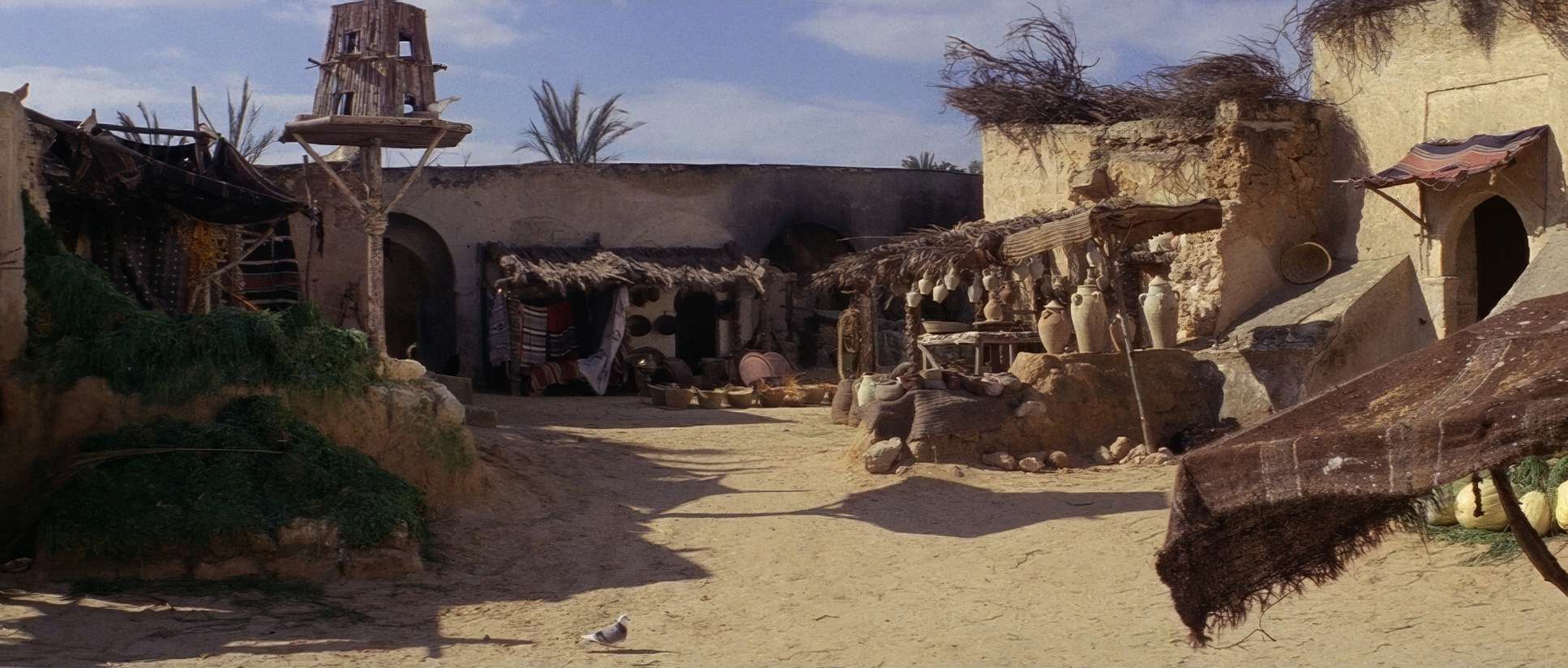 The palette is unapologetically earthy. We’re talking ochres, ambers, and sun-baked browns. If I were grading this today, I’d be obsessing over that “film print” look. Look at the skies: they aren’t that fake, hyper-saturated digital blue we see too often now. They have a dusty, cyan-leaning hue that feels like you can actually taste the sand in the air.