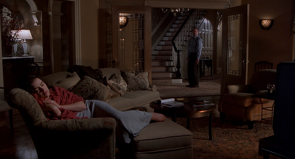For much of the film, Malcolm is visually isolated. The camera rarely tracks with him in a way that implies true interaction. When he appears to be with his wife, Anna, or Cole’s mother, Lynn, the shots are framed to create distance. We see two-shots that quickly cut to singles, or wider shots that include both characters but lack the parallax and interaction cues that confirm a shared physical space. This lack of fluid, reactive camera movement around Malcolm when he is “interacting” with the living is a subtle, yet potent, clue to his true state.